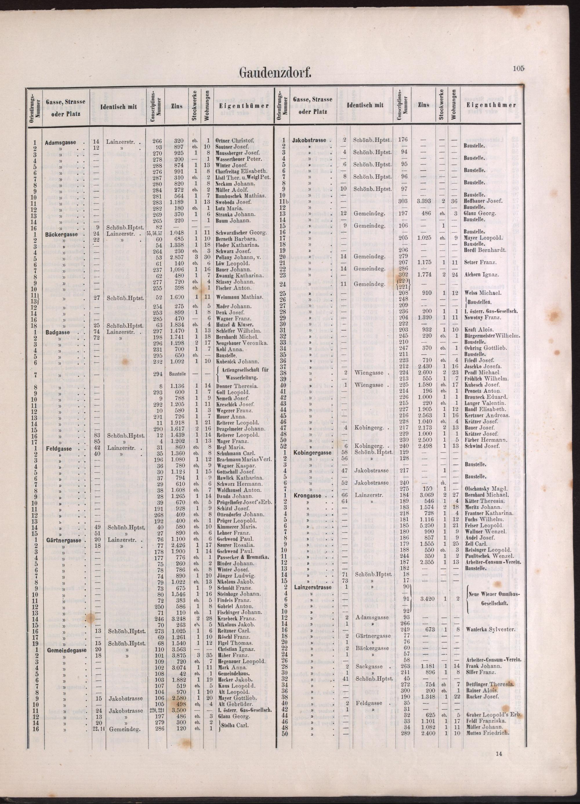 Häuser-Schema der K. K. Reichs-Haupt- und Residenzstadt Wien : mit deren zehn Bezirken und den Vororten Ober- und Untermeidling, Gaudenzdorf, Sechshaus, Rudolfsheim, Fünfhaus, Neulerchenfeld, Ottakring, Hernals, Währing, Weinhaus, Gersthof, Ober- und Unterdöbling, Heiligenstadt, Grinzing, Nussdorf, Brigittenau, Floridsdorf, Simmering und die neuporjectirte Donaustadt in 15 Plänen / hrsg. von Peter Smöch