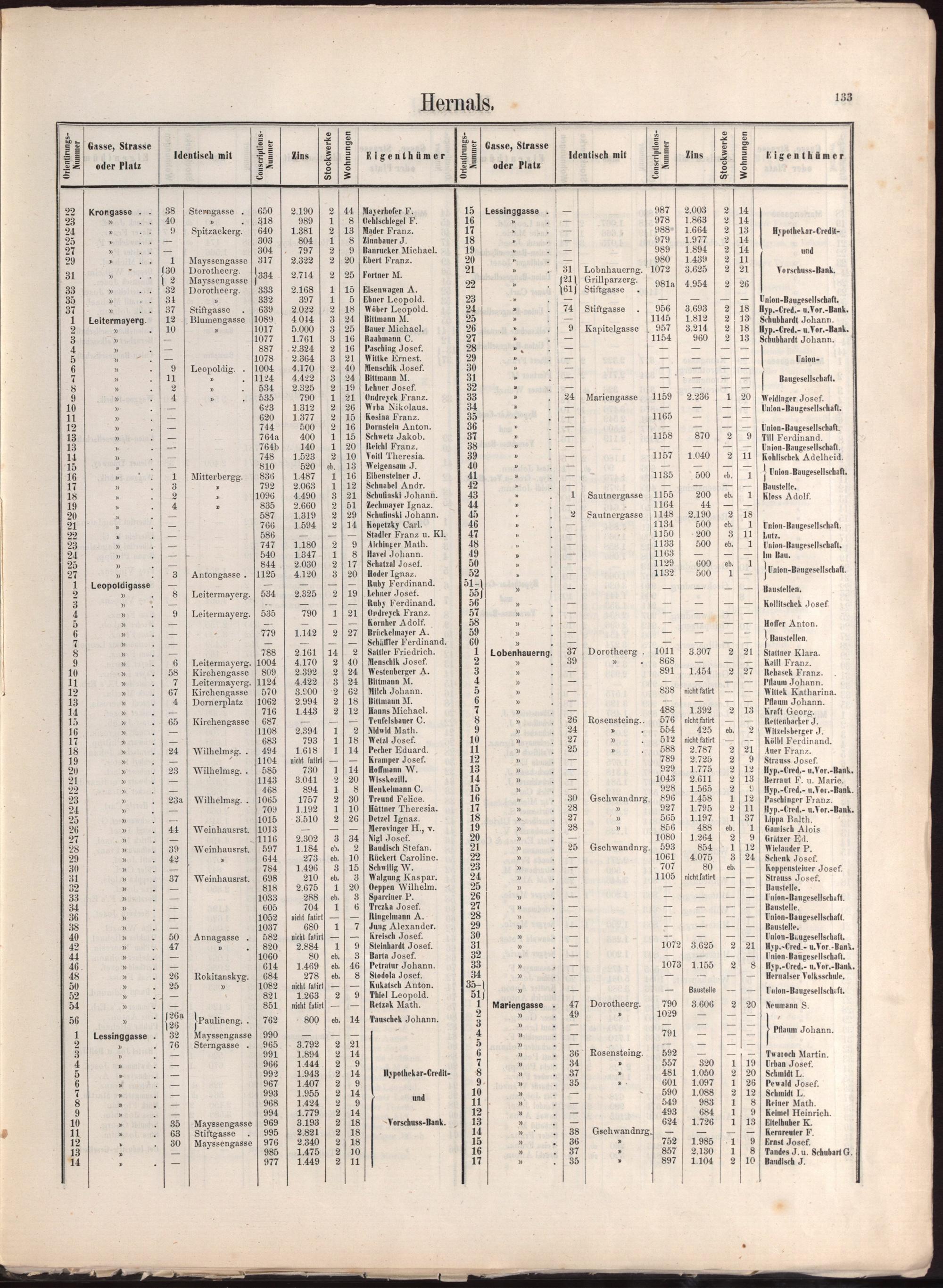 Häuser-Schema der K. K. Reichs-Haupt- und Residenzstadt Wien : mit deren zehn Bezirken und den Vororten Ober- und Untermeidling, Gaudenzdorf, Sechshaus, Rudolfsheim, Fünfhaus, Neulerchenfeld, Ottakring, Hernals, Währing, Weinhaus, Gersthof, Ober- und Unterdöbling, Heiligenstadt, Grinzing, Nussdorf, Brigittenau, Floridsdorf, Simmering und die neuporjectirte Donaustadt in 15 Plänen / hrsg. von Peter Smöch