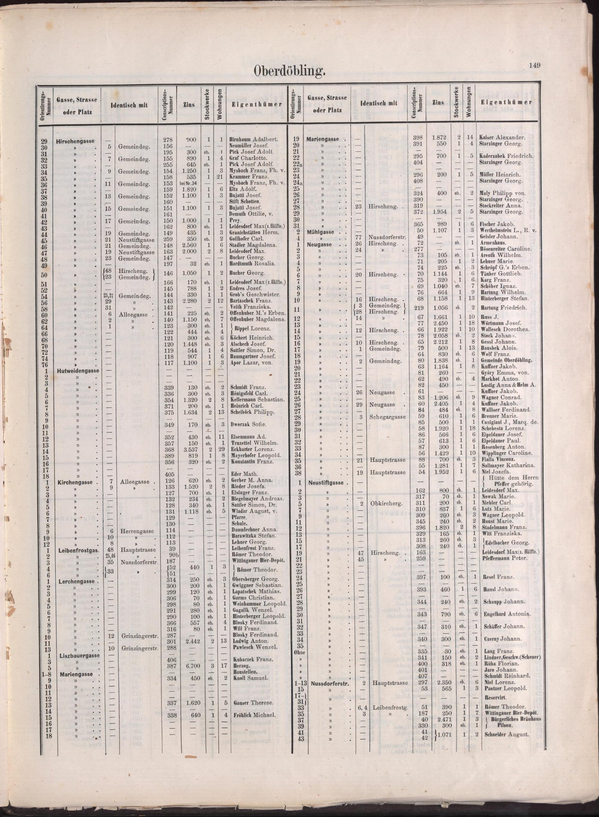 Häuser-Schema der K. K. Reichs-Haupt- und Residenzstadt Wien : mit deren zehn Bezirken und den Vororten Ober- und Untermeidling, Gaudenzdorf, Sechshaus, Rudolfsheim, Fünfhaus, Neulerchenfeld, Ottakring, Hernals, Währing, Weinhaus, Gersthof, Ober- und Unterdöbling, Heiligenstadt, Grinzing, Nussdorf, Brigittenau, Floridsdorf, Simmering und die neuporjectirte Donaustadt in 15 Plänen / hrsg. von Peter Smöch