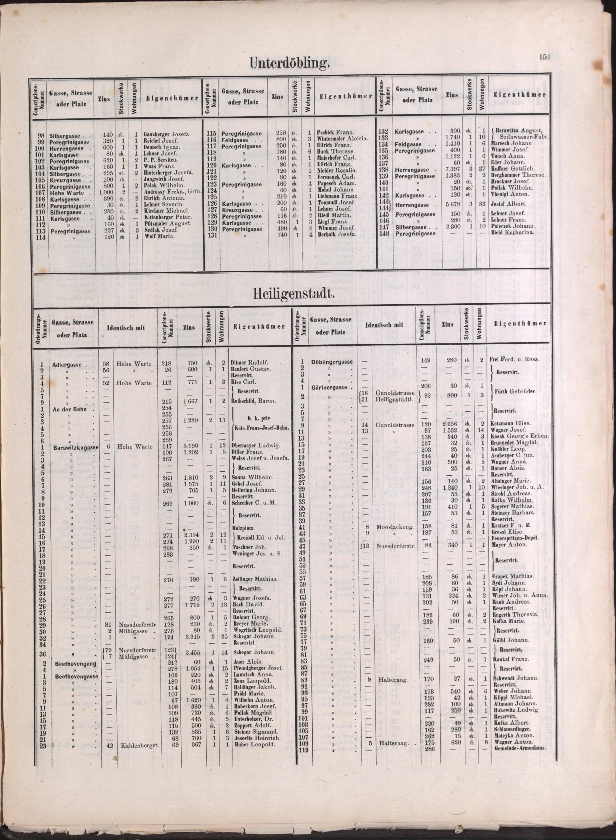 Häuser-Schema der K. K. Reichs-Haupt- und Residenzstadt Wien : mit deren zehn Bezirken und den Vororten Ober- und Untermeidling, Gaudenzdorf, Sechshaus, Rudolfsheim, Fünfhaus, Neulerchenfeld, Ottakring, Hernals, Währing, Weinhaus, Gersthof, Ober- und Unterdöbling, Heiligenstadt, Grinzing, Nussdorf, Brigittenau, Floridsdorf, Simmering und die neuporjectirte Donaustadt in 15 Plänen / hrsg. von Peter Smöch