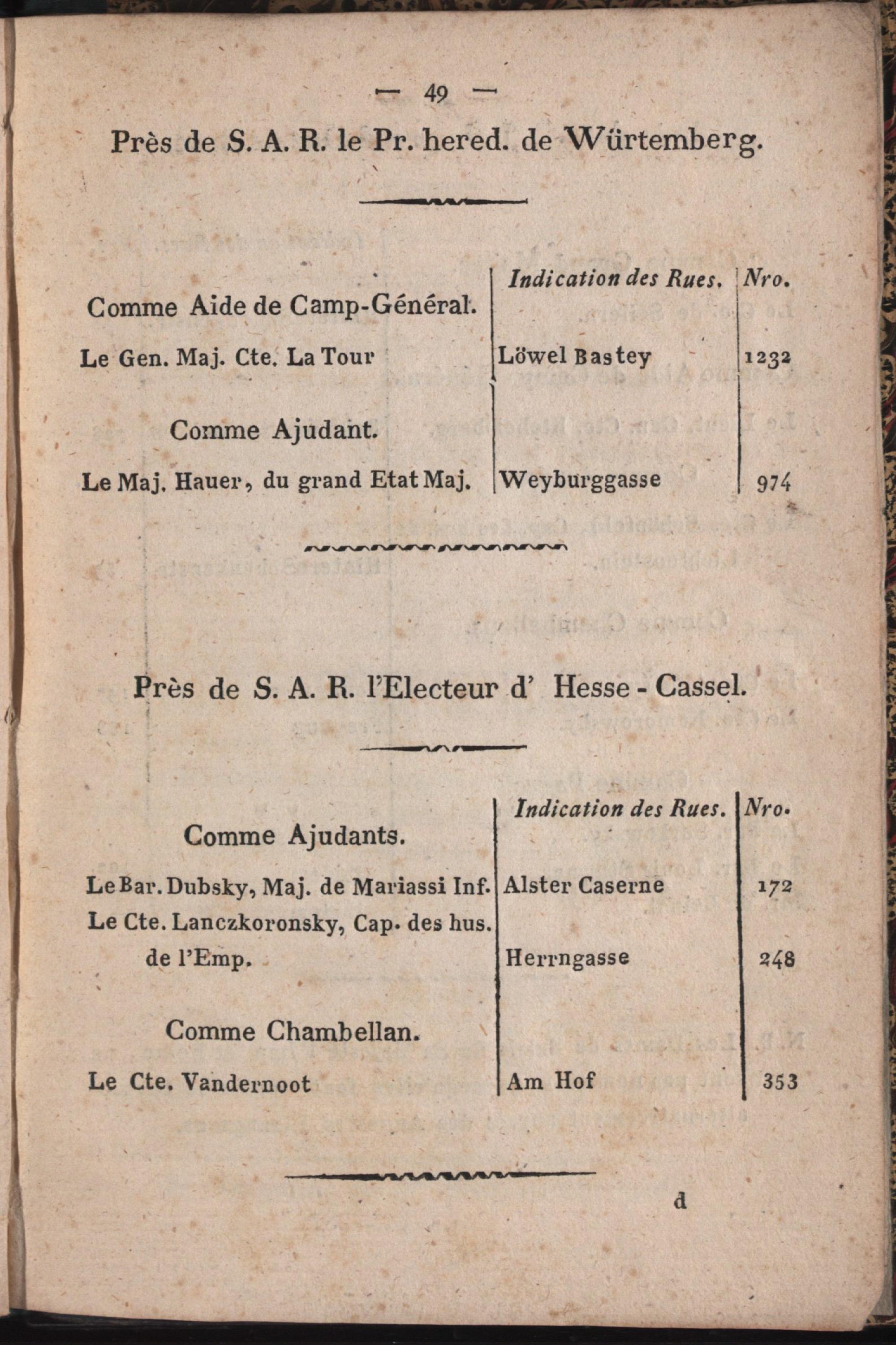 Guide des étrangers à Vienne pendant le congrès : contenant les noms des souverains présents dans cette capitale, ainsi que ceux des ministres et chargés d'affaires des differentes cours auprès de celle de Vienne au mois de Janvier 1815 ; avec l'indication des rues et numero des maisons qu'ils habitent / [Jean Gaggiám]