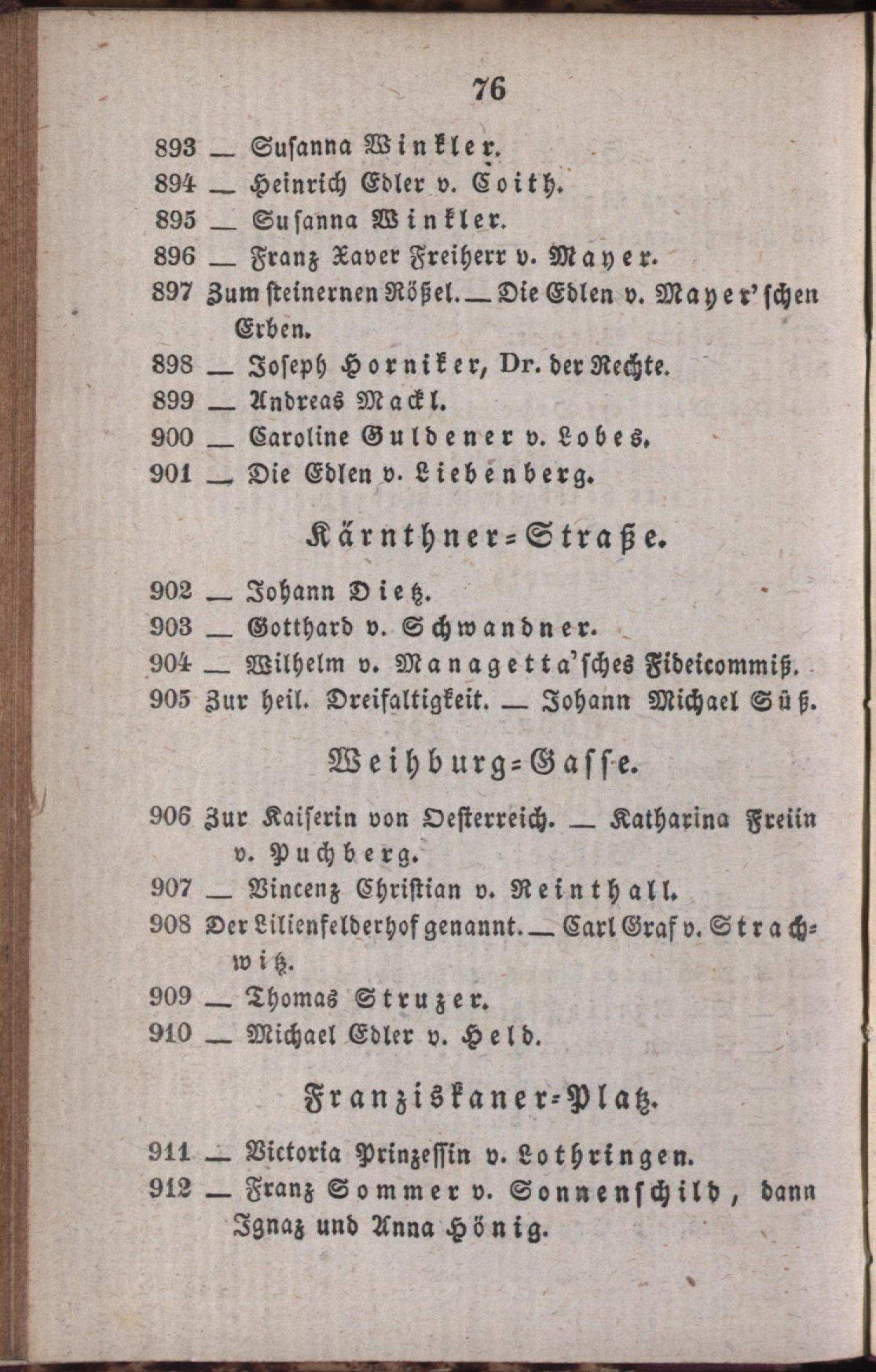 Häuser-Schema der kaiserl. königl. Haupt- und Residenzstadt Wien : mit Bezeichnung der Schilde, Gassen, Benennung der Haus-Eigenthümer, Eintheilung der Grundbuchsobrigkeiten, dann der Pfarr- und Polizei-Bezirke ; mit dem Grundrisse der inneren Stadt / hrsg. von Anton Ziegler