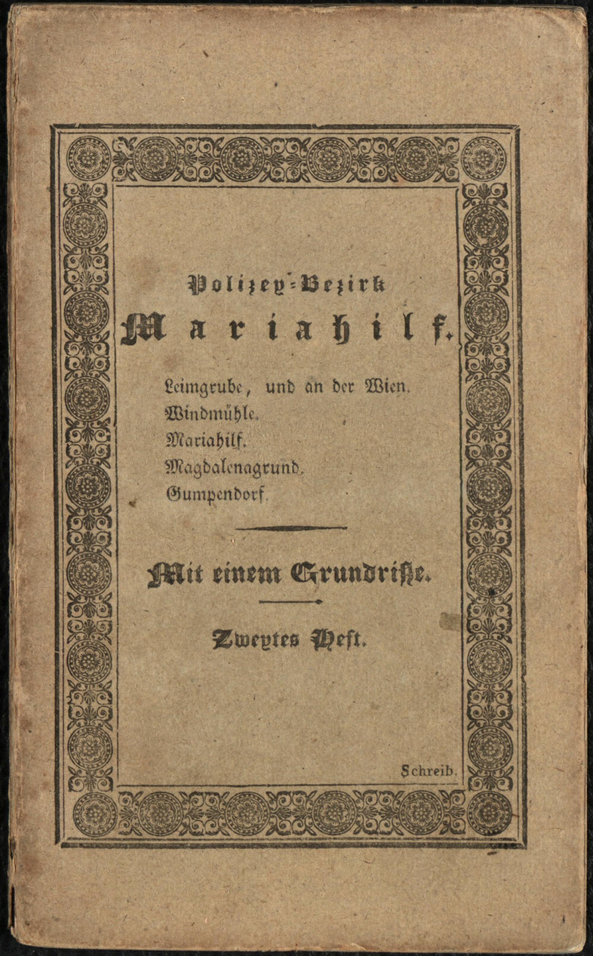 5 (1827) Polizey-Bezirk Mariahilf : Leimgrube, und an der Wien. Windmühle. Mariahilf. Magdalenagrund. Gumpendorf. Mit einem Grundriße / hrsg. von Anton Ziegler und Carl Vasquez