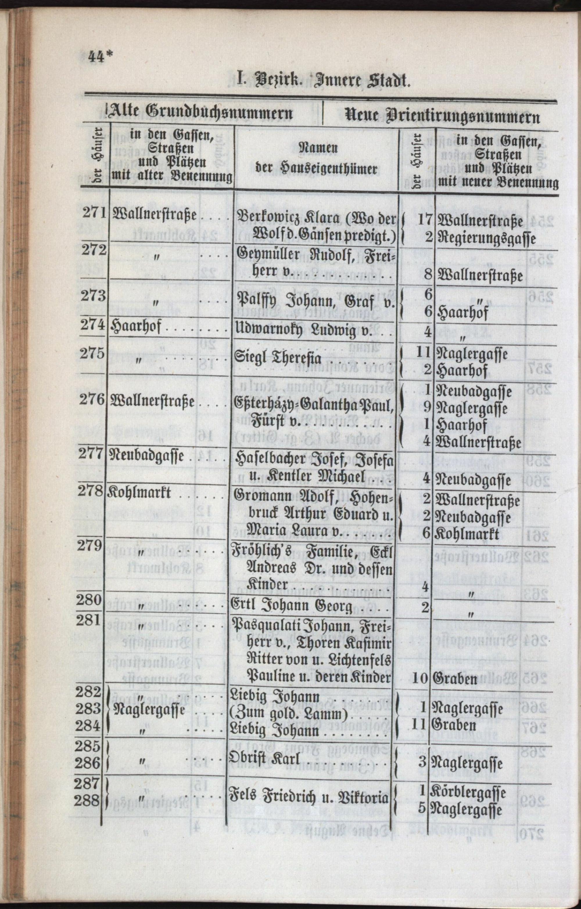1: Stadt : Nachweis der alten und neuen Benennungen der Gassen, Straßen und Plätze in alphabetischer Ordnung