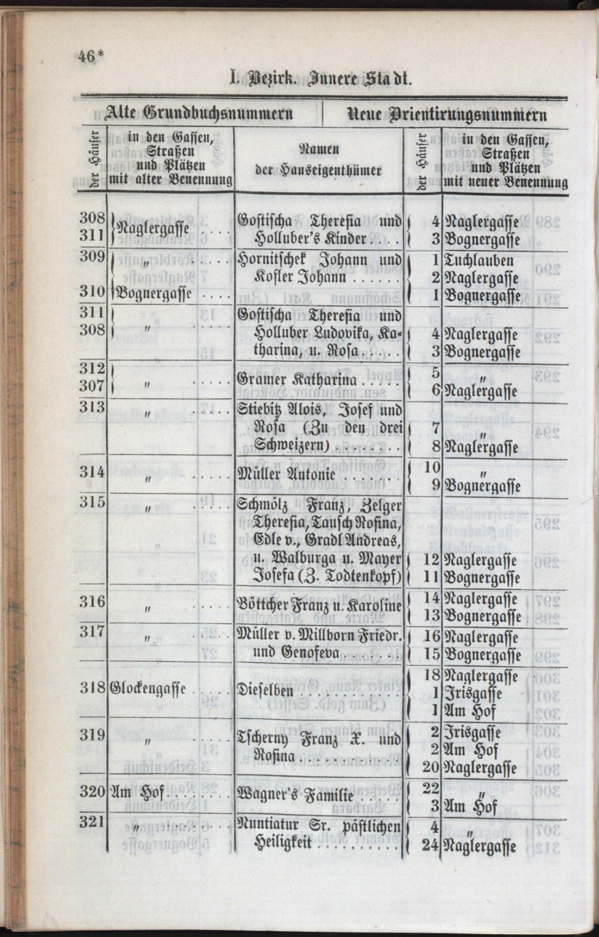 1: Stadt : Nachweis der alten und neuen Benennungen der Gassen, Straßen und Plätze in alphabetischer Ordnung