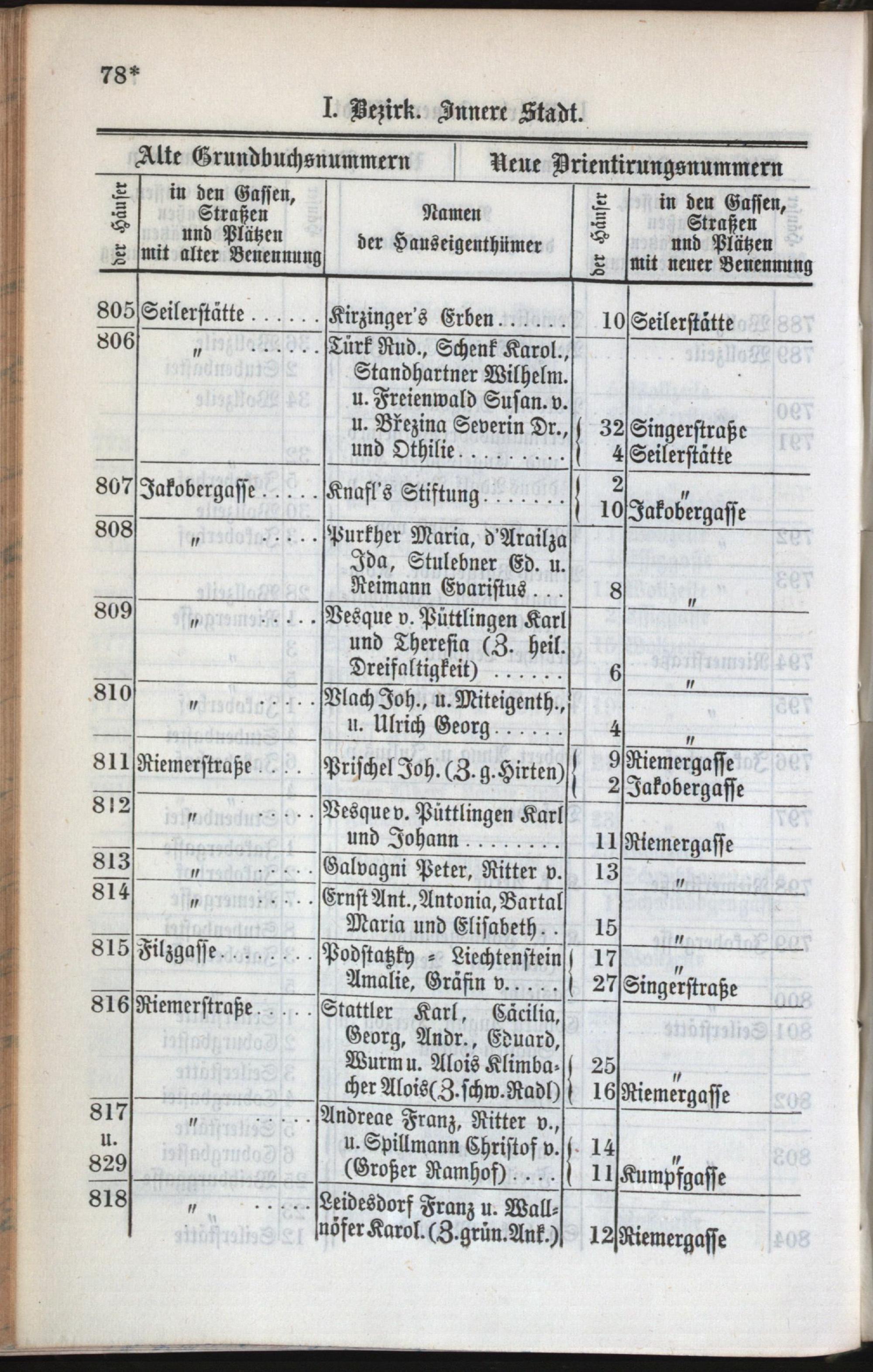 1: Stadt : Nachweis der alten und neuen Benennungen der Gassen, Straßen und Plätze in alphabetischer Ordnung