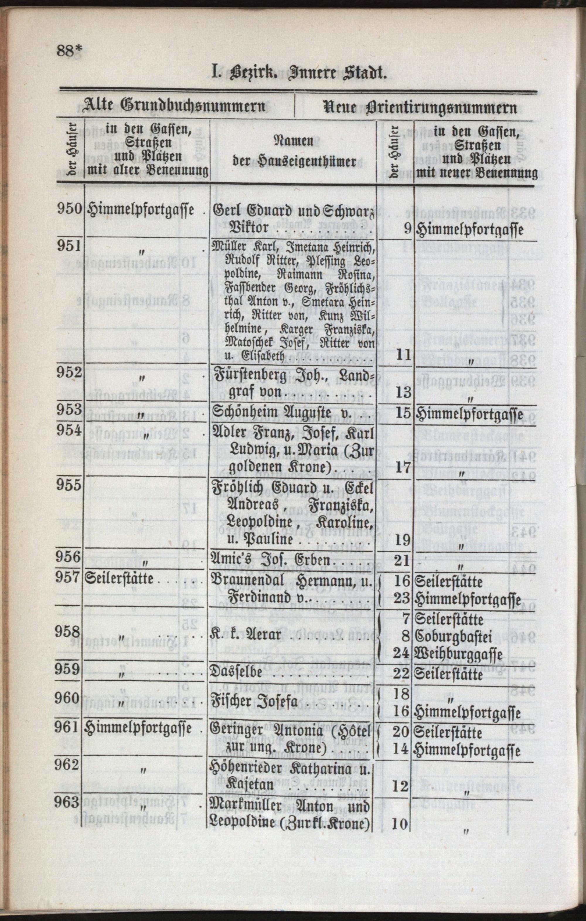 1: Stadt : Nachweis der alten und neuen Benennungen der Gassen, Straßen und Plätze in alphabetischer Ordnung