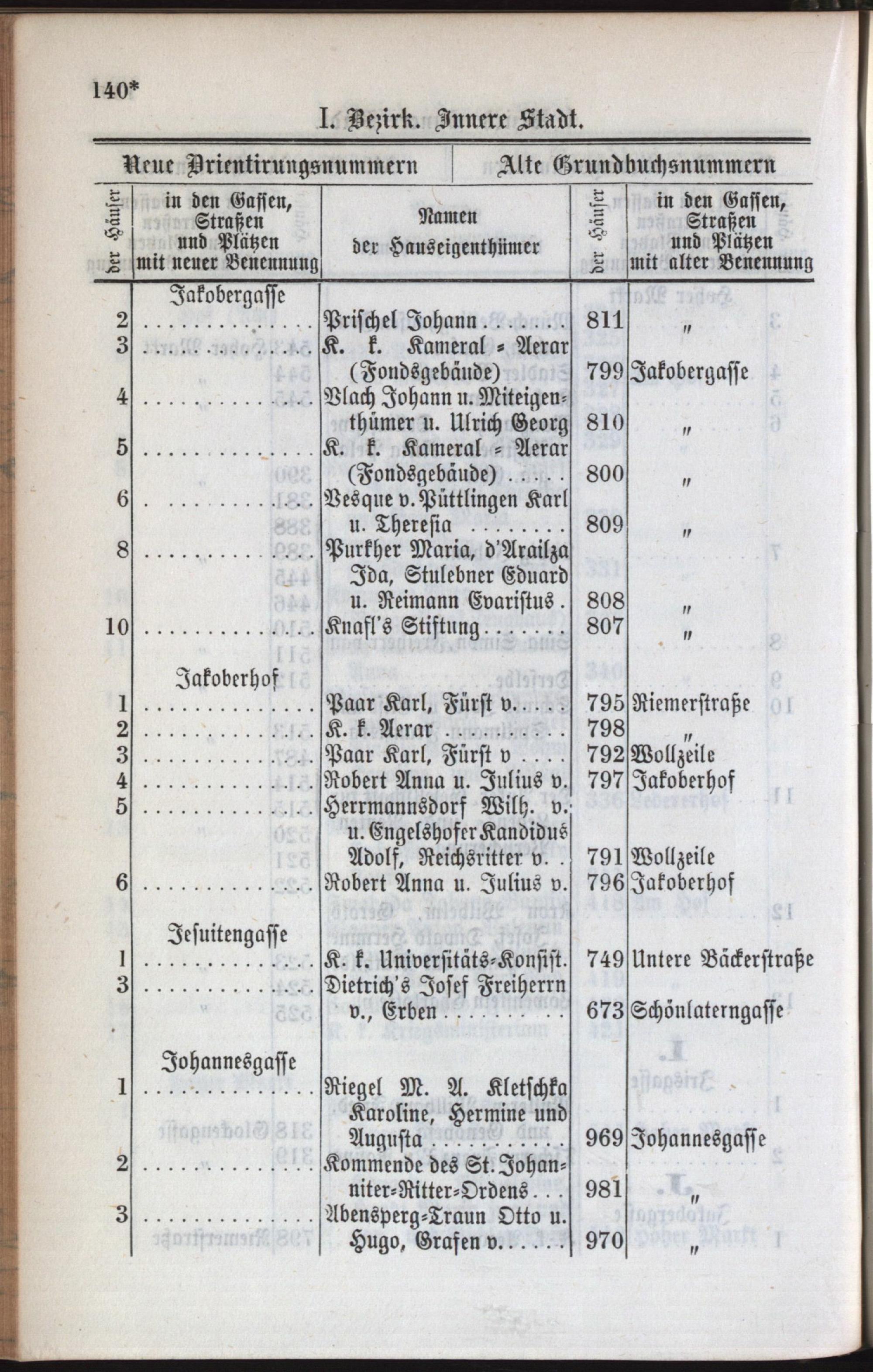 1: Stadt : Nachweis der alten und neuen Benennungen der Gassen, Straßen und Plätze in alphabetischer Ordnung