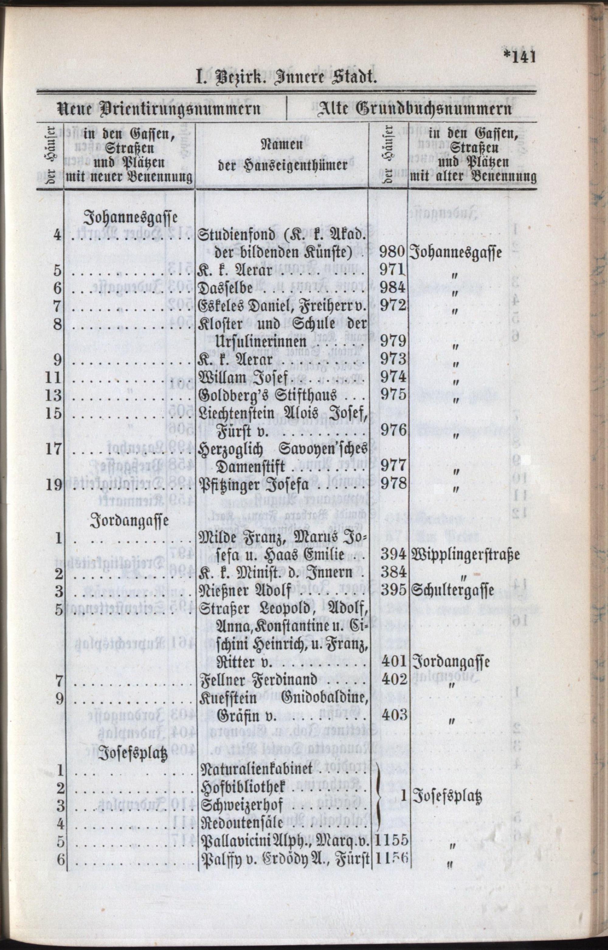 1: Stadt : Nachweis der alten und neuen Benennungen der Gassen, Straßen und Plätze in alphabetischer Ordnung