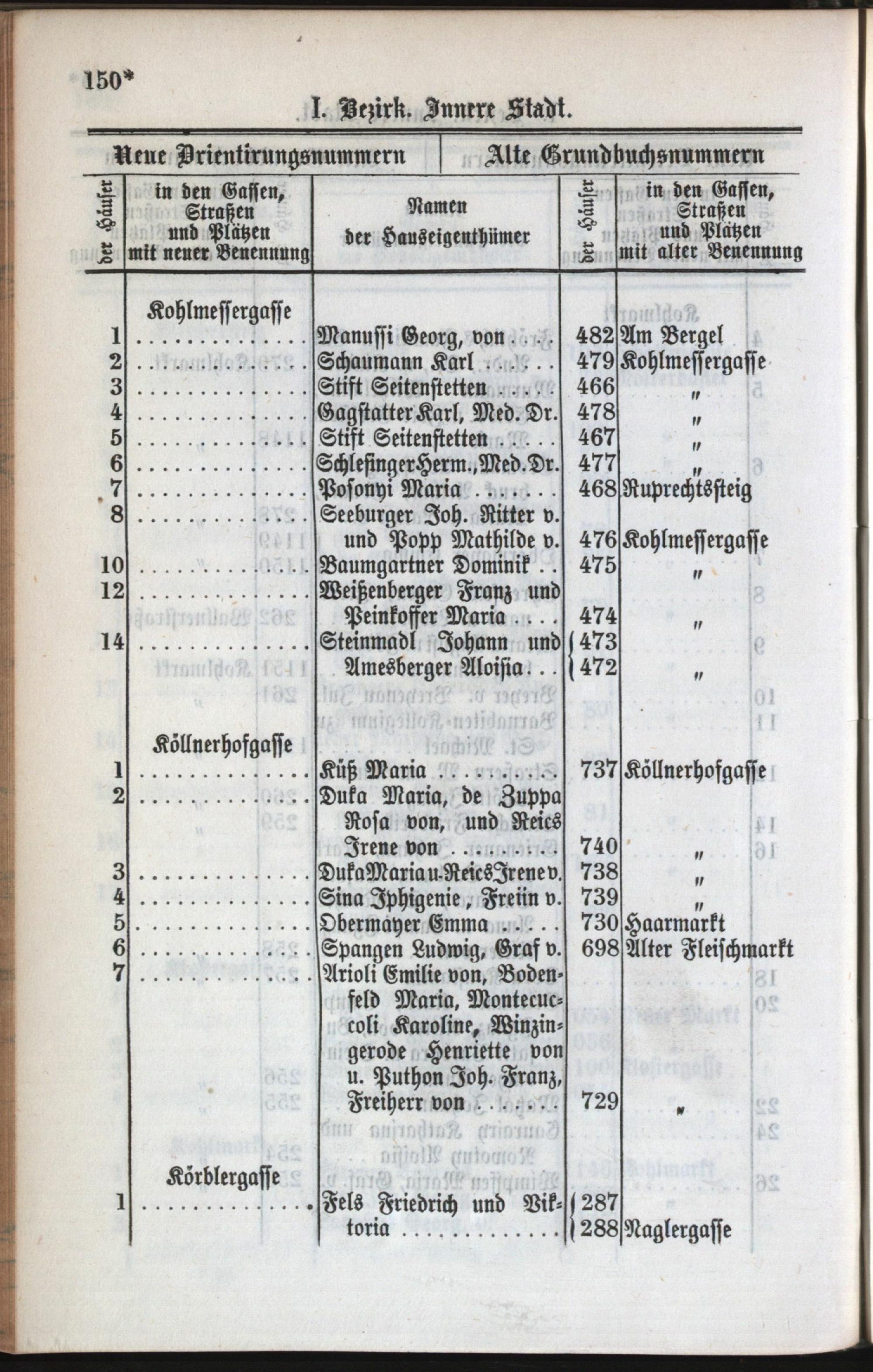 1: Stadt : Nachweis der alten und neuen Benennungen der Gassen, Straßen und Plätze in alphabetischer Ordnung