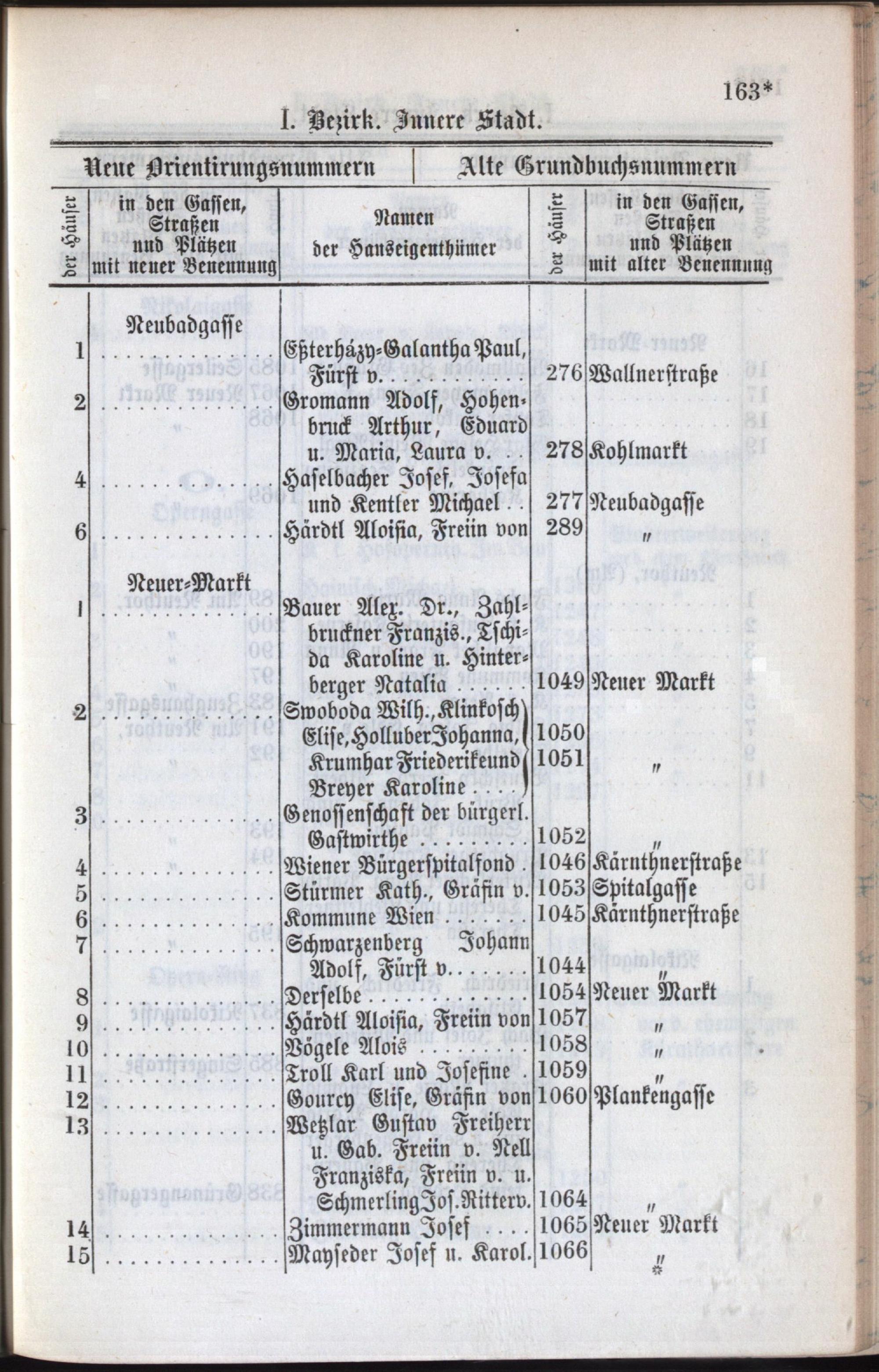 1: Stadt : Nachweis der alten und neuen Benennungen der Gassen, Straßen und Plätze in alphabetischer Ordnung