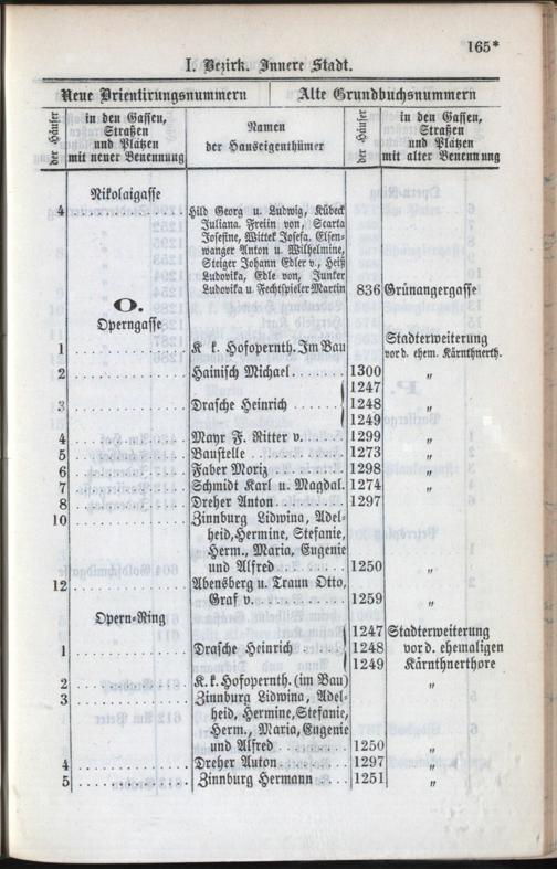 1: Stadt : Nachweis der alten und neuen Benennungen der Gassen, Straßen und Plätze in alphabetischer Ordnung