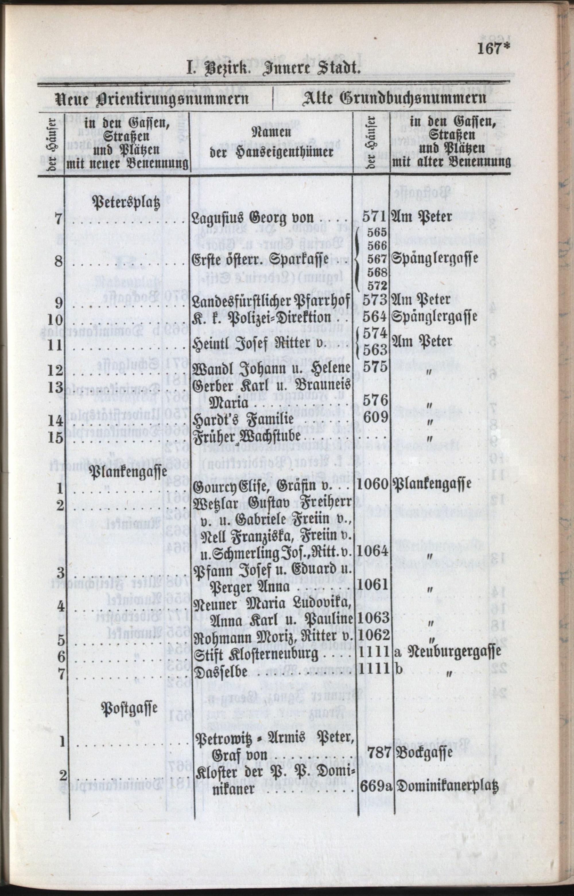 1: Stadt : Nachweis der alten und neuen Benennungen der Gassen, Straßen und Plätze in alphabetischer Ordnung