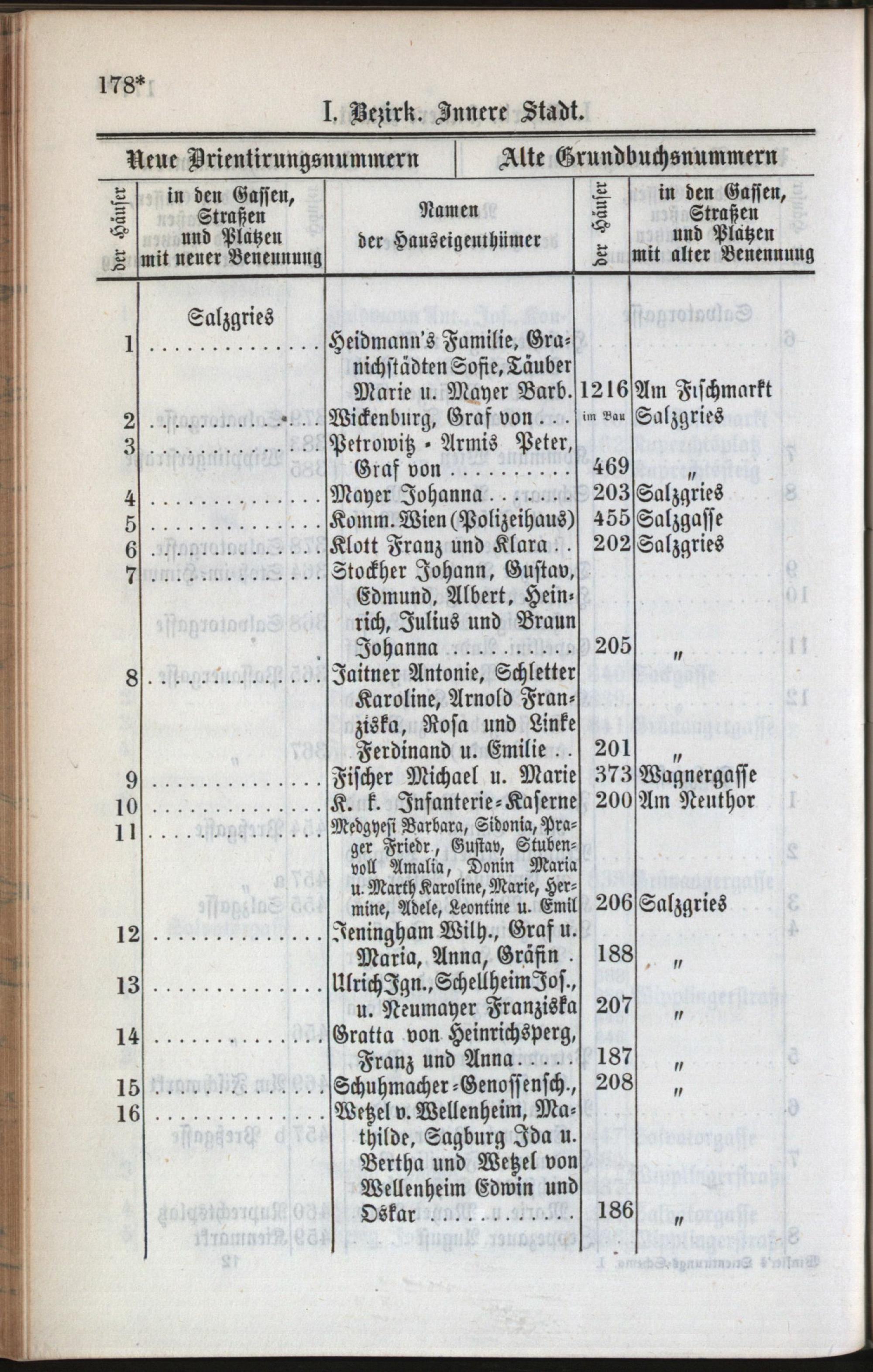 1: Stadt : Nachweis der alten und neuen Benennungen der Gassen, Straßen und Plätze in alphabetischer Ordnung