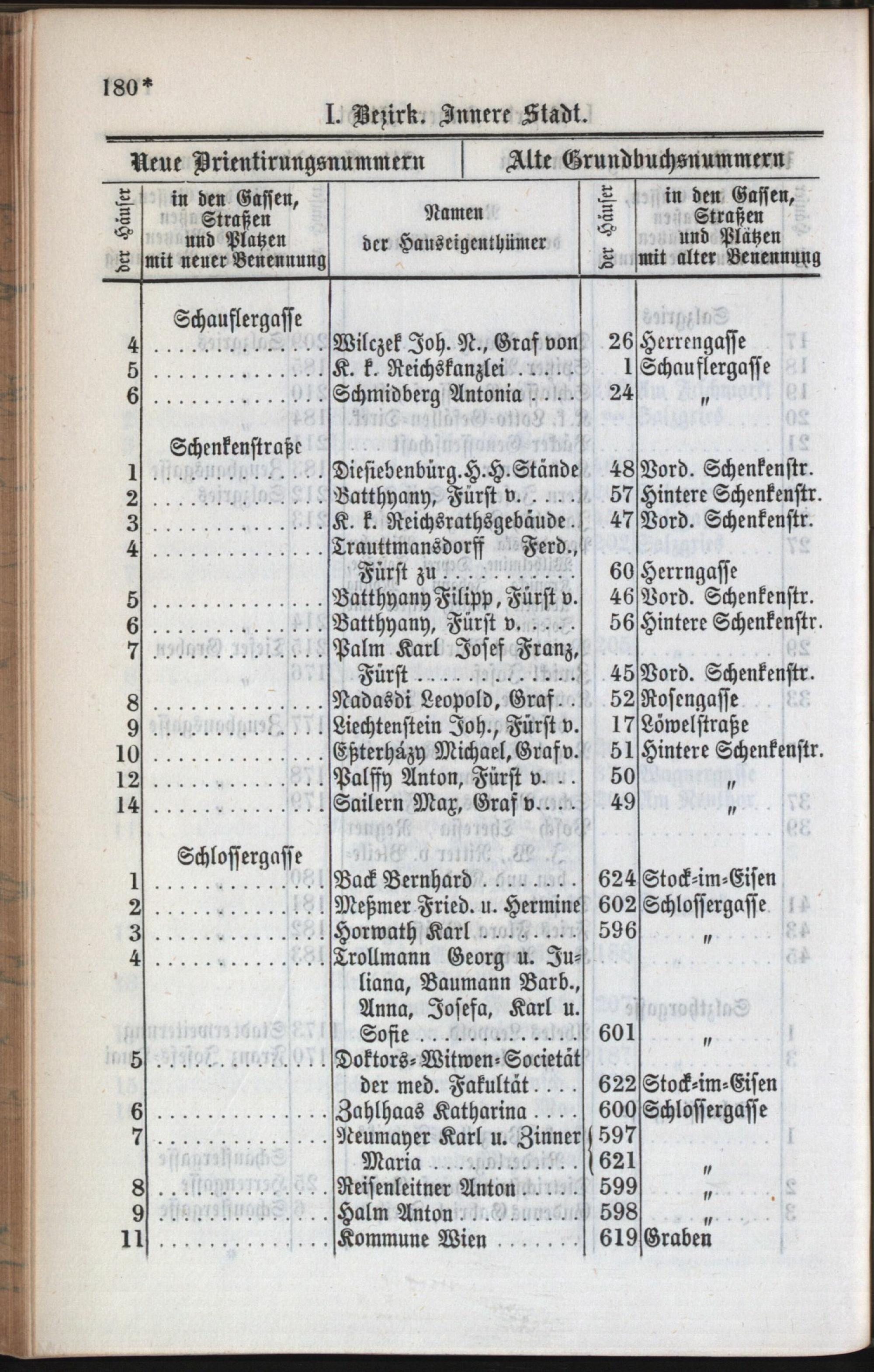 1: Stadt : Nachweis der alten und neuen Benennungen der Gassen, Straßen und Plätze in alphabetischer Ordnung