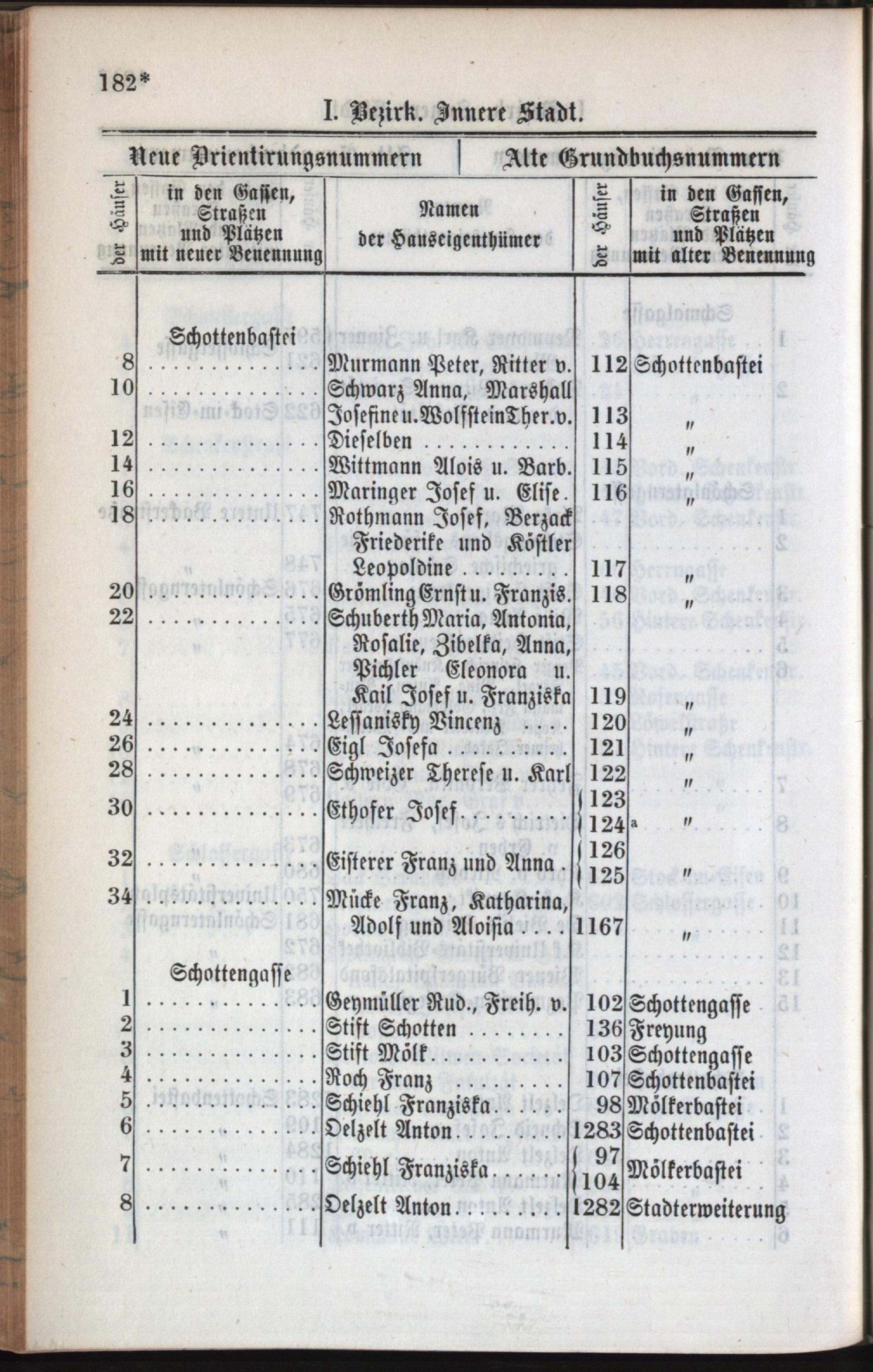 1: Stadt : Nachweis der alten und neuen Benennungen der Gassen, Straßen und Plätze in alphabetischer Ordnung