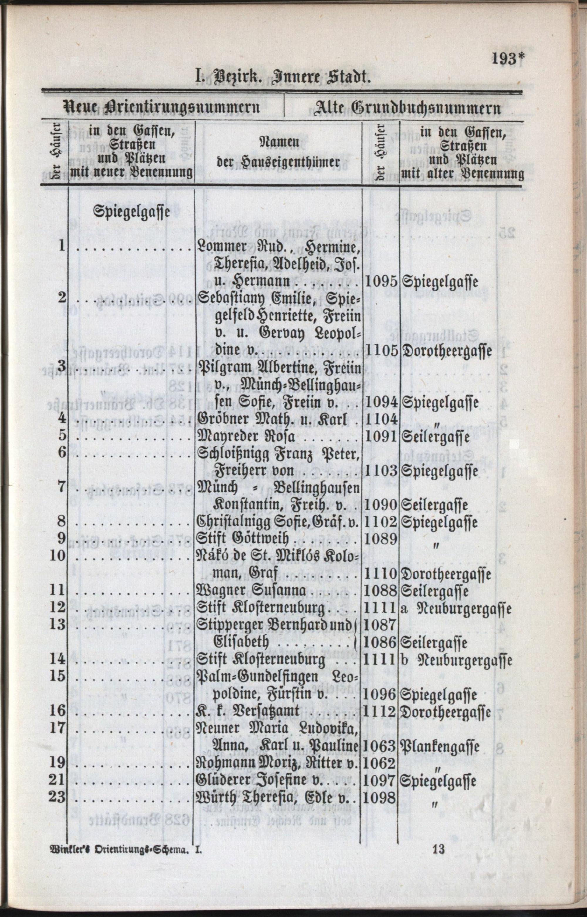 1: Stadt : Nachweis der alten und neuen Benennungen der Gassen, Straßen und Plätze in alphabetischer Ordnung