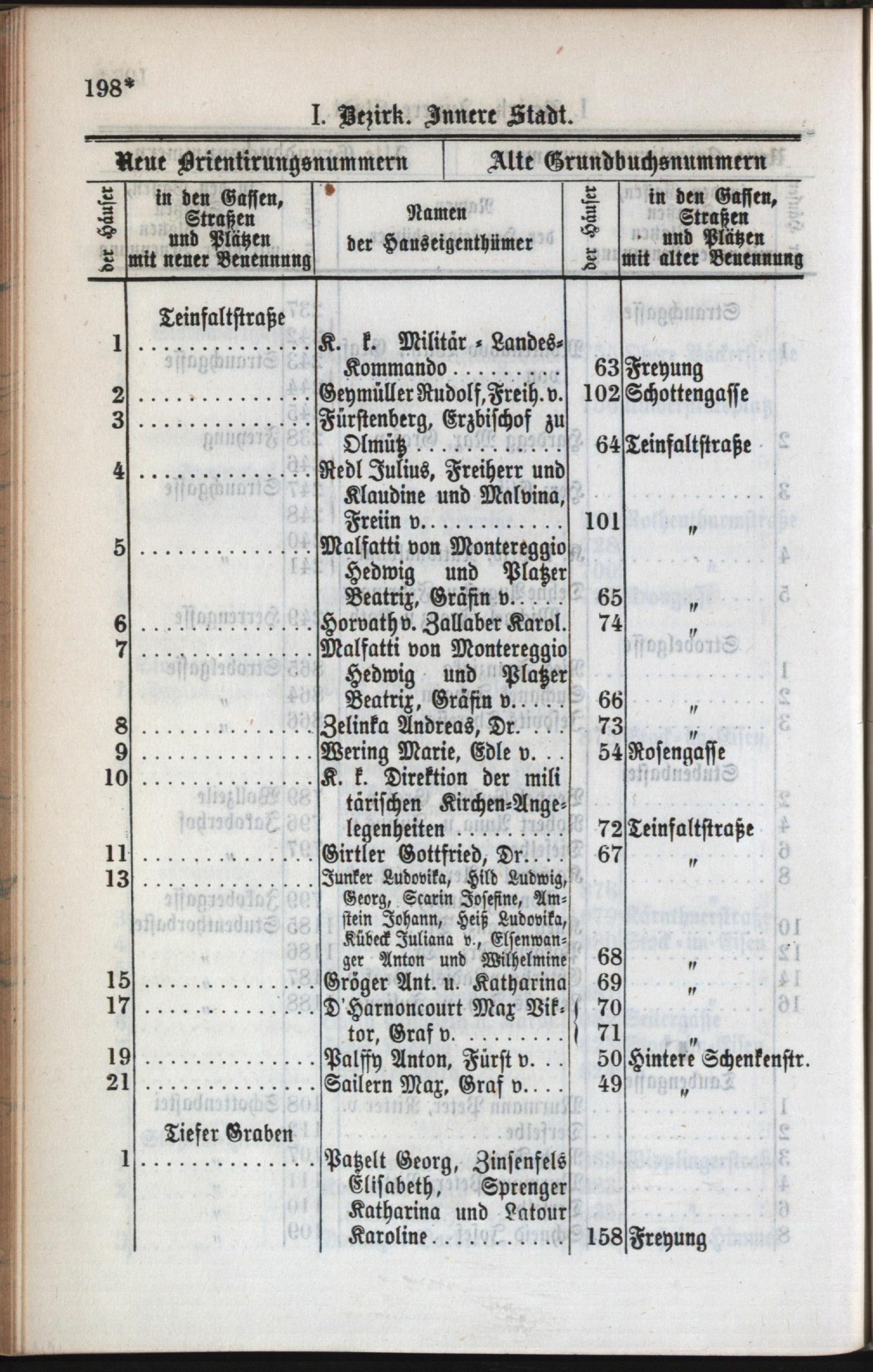 1: Stadt : Nachweis der alten und neuen Benennungen der Gassen, Straßen und Plätze in alphabetischer Ordnung
