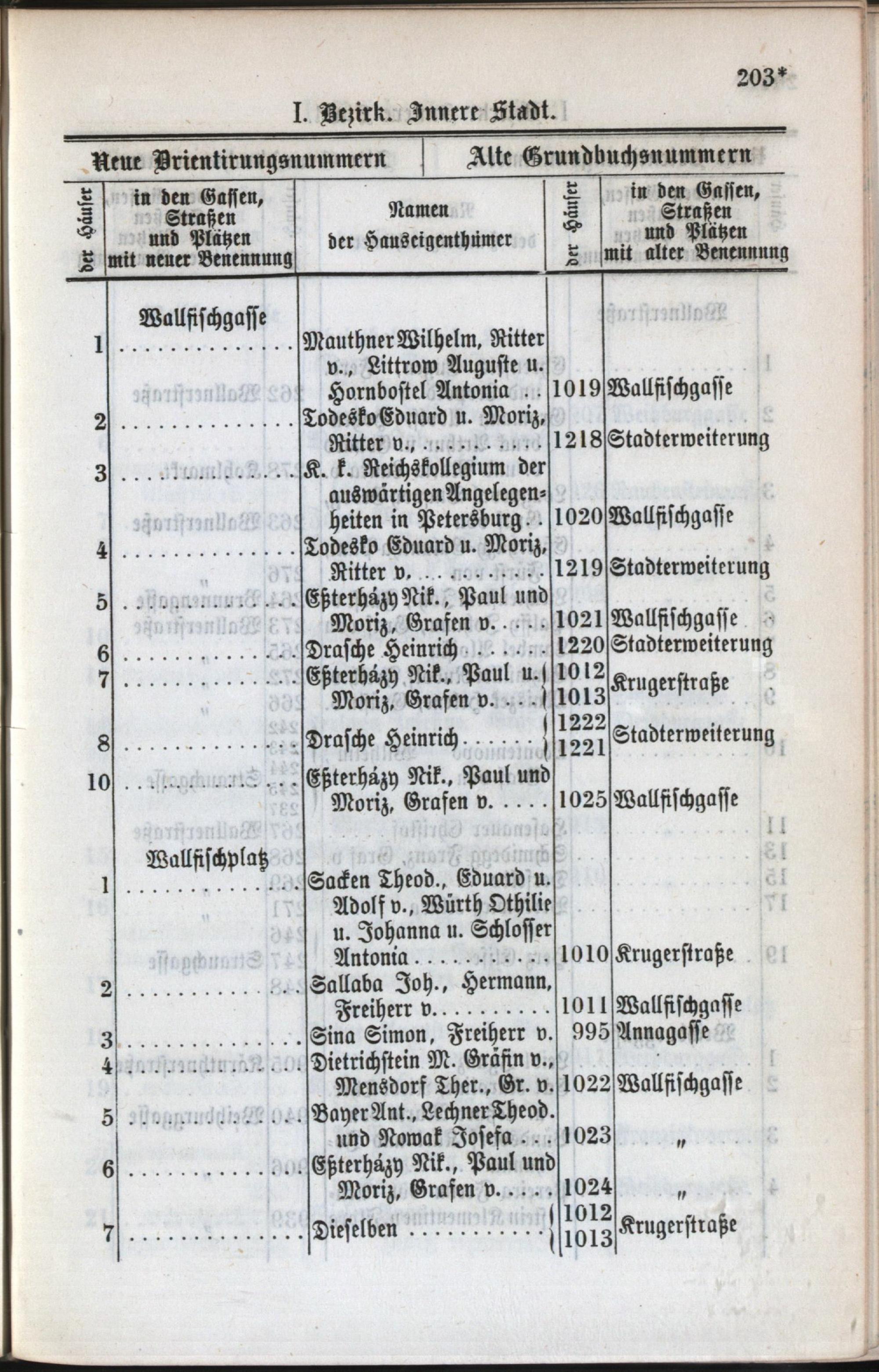 1: Stadt : Nachweis der alten und neuen Benennungen der Gassen, Straßen und Plätze in alphabetischer Ordnung