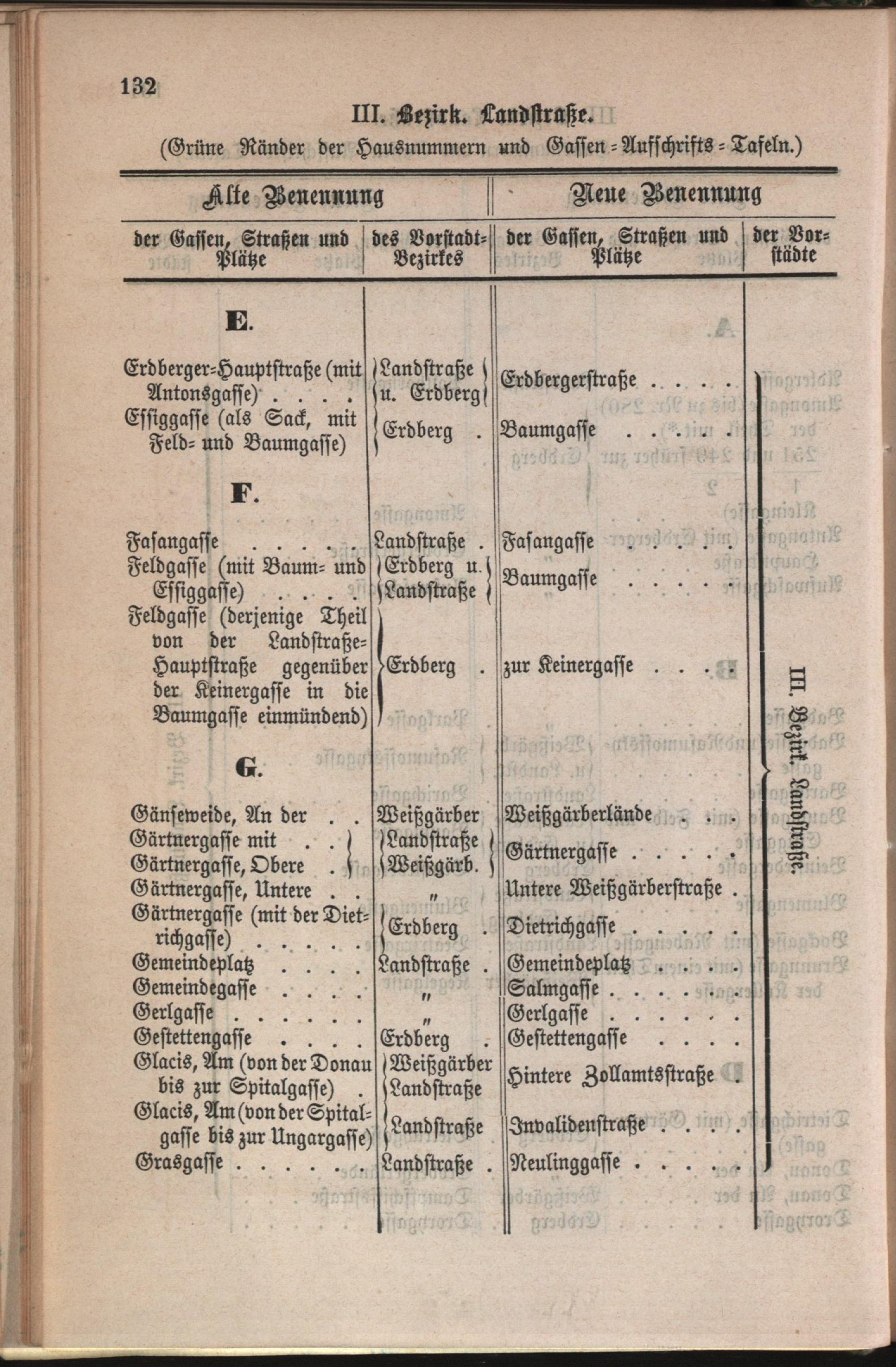 3: Landstraße : Nachweis der alten und neuen Benennungen der Gassen, Straßen und Plätze in alphabetischer Ordnung