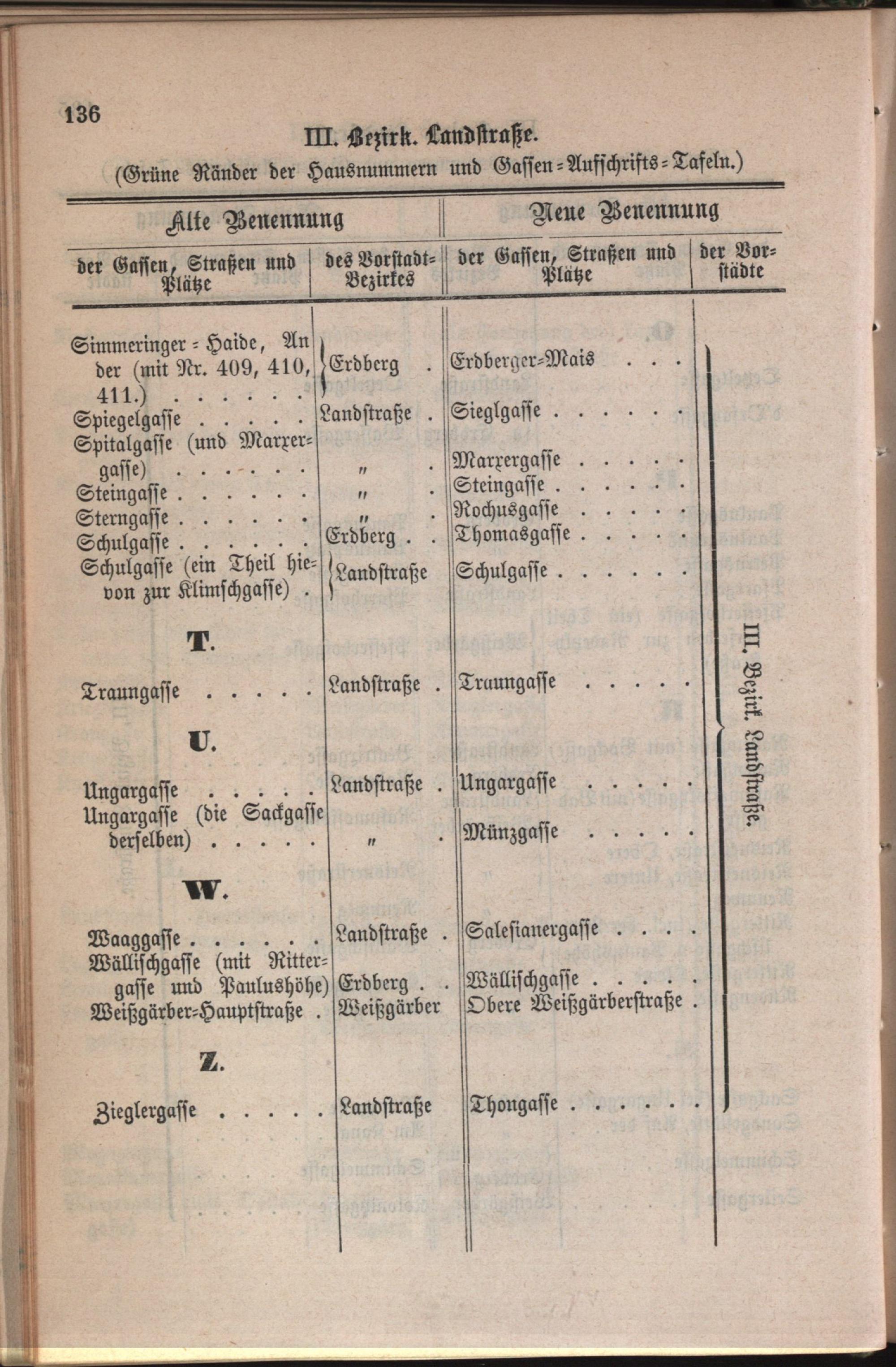 3: Landstraße : Nachweis der alten und neuen Benennungen der Gassen, Straßen und Plätze in alphabetischer Ordnung