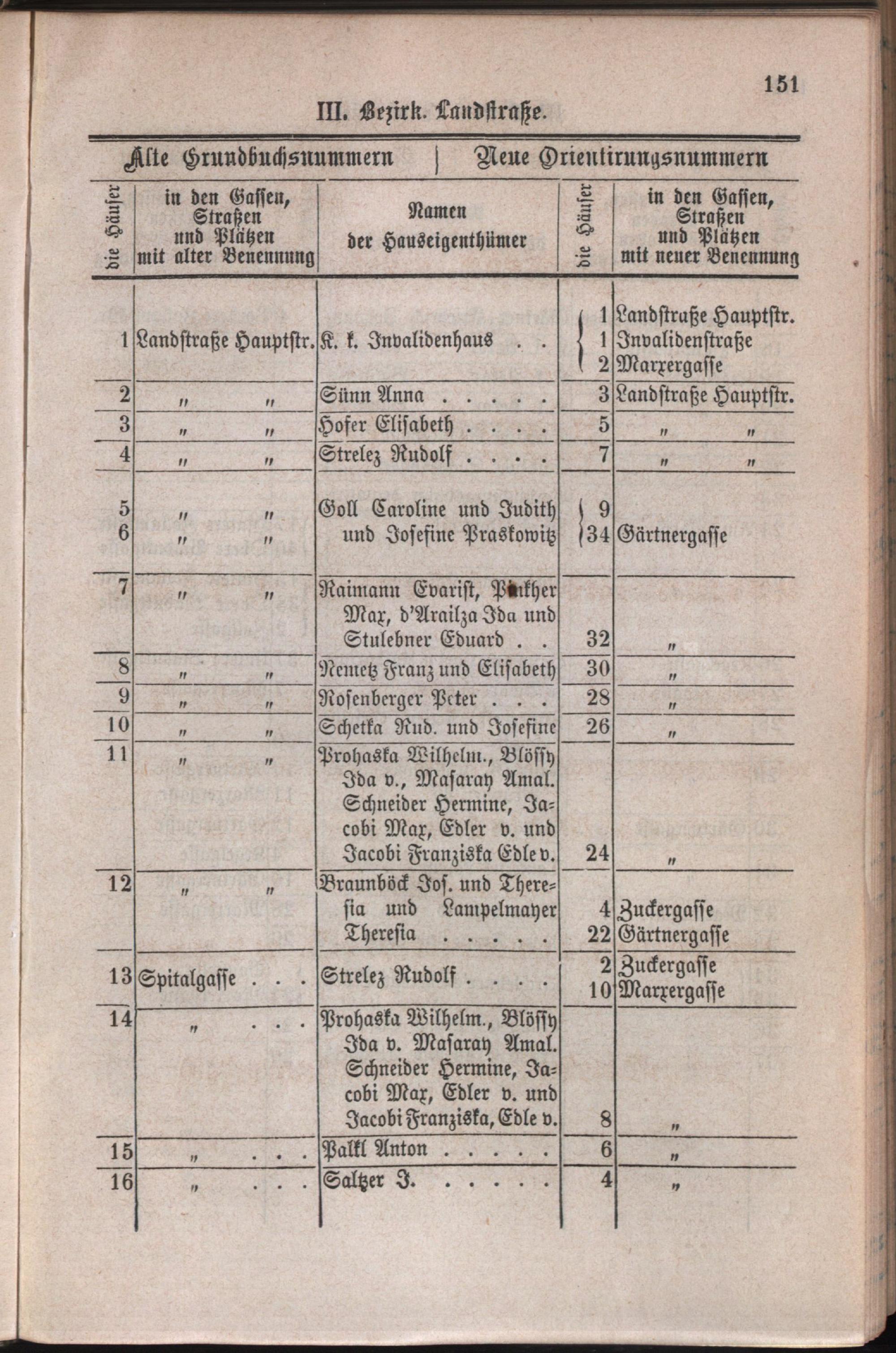 3: Landstraße : Nachweis der alten und neuen Benennungen der Gassen, Straßen und Plätze in alphabetischer Ordnung