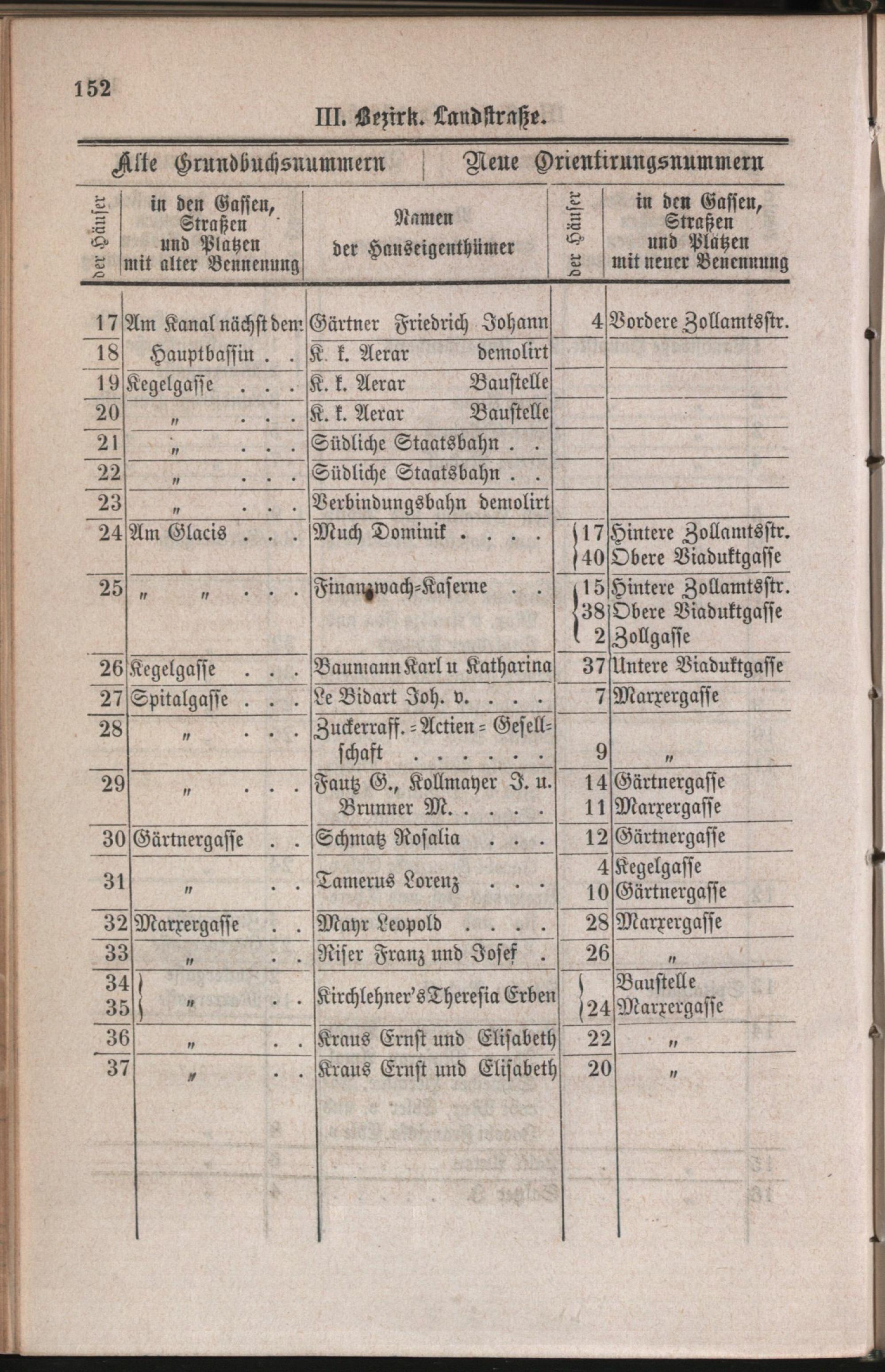 3: Landstraße : Nachweis der alten und neuen Benennungen der Gassen, Straßen und Plätze in alphabetischer Ordnung