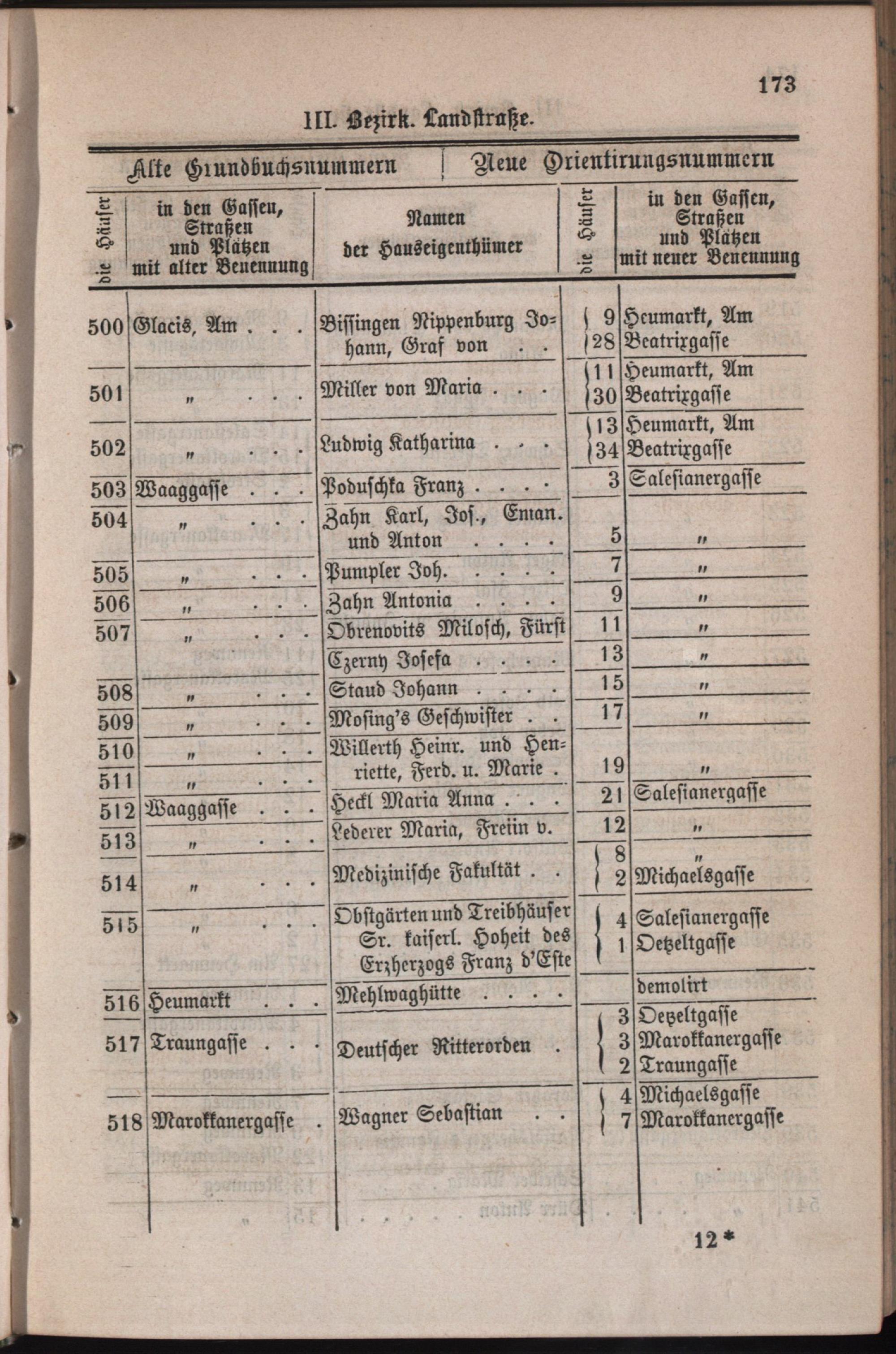 3: Landstraße : Nachweis der alten und neuen Benennungen der Gassen, Straßen und Plätze in alphabetischer Ordnung
