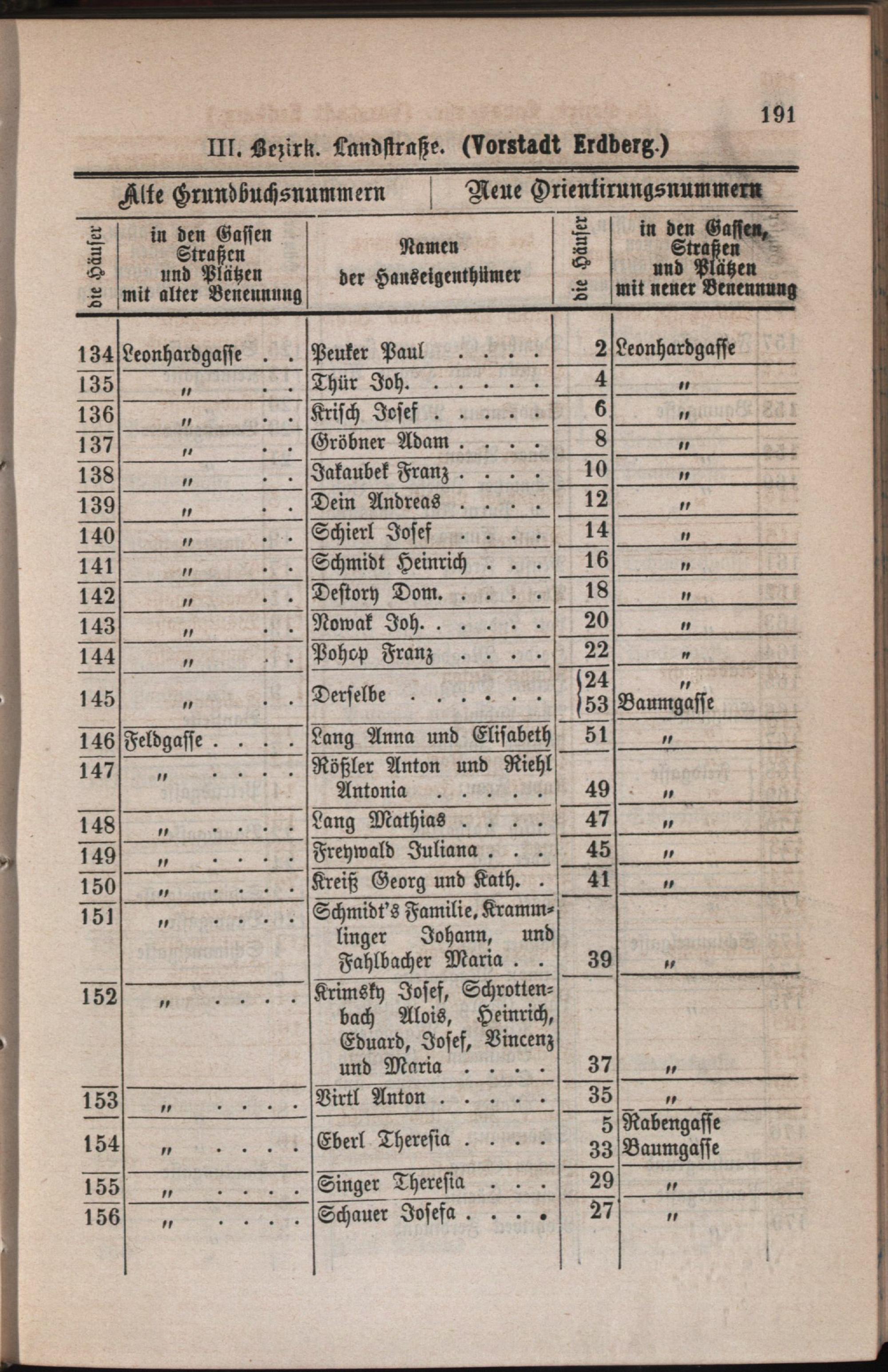 3: Landstraße : Nachweis der alten und neuen Benennungen der Gassen, Straßen und Plätze in alphabetischer Ordnung