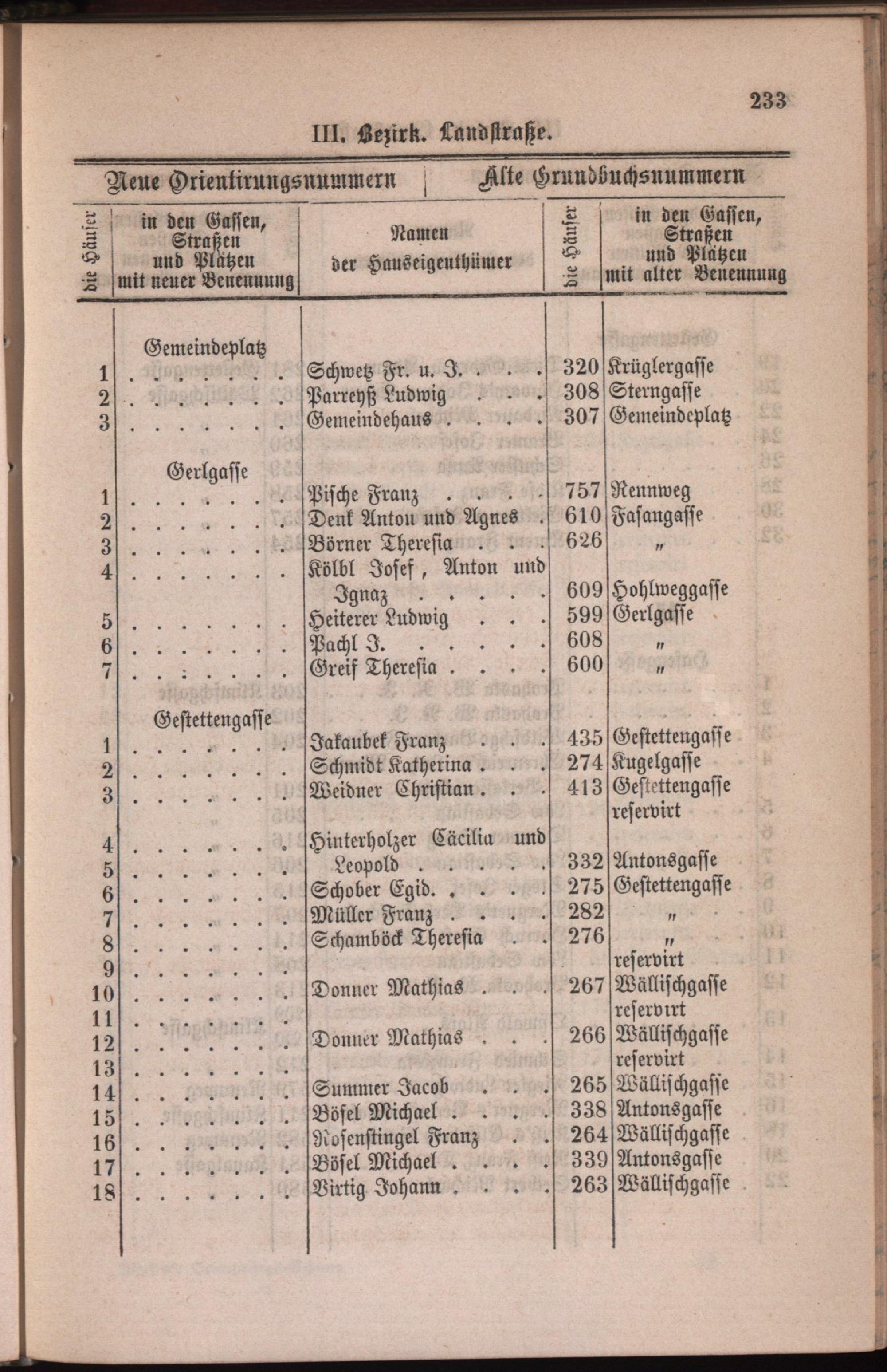 3: Landstraße : Nachweis der alten und neuen Benennungen der Gassen, Straßen und Plätze in alphabetischer Ordnung