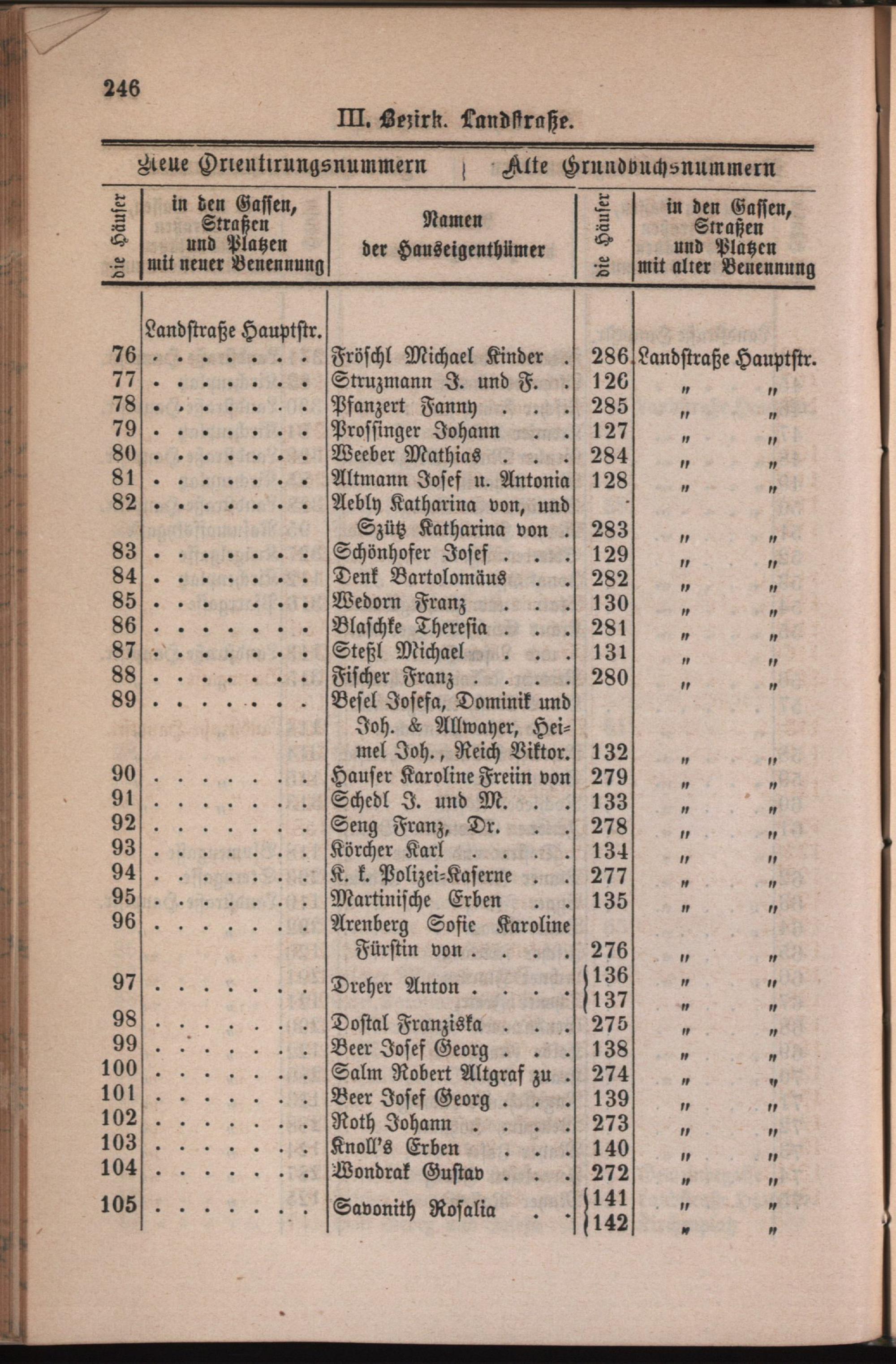 3: Landstraße : Nachweis der alten und neuen Benennungen der Gassen, Straßen und Plätze in alphabetischer Ordnung
