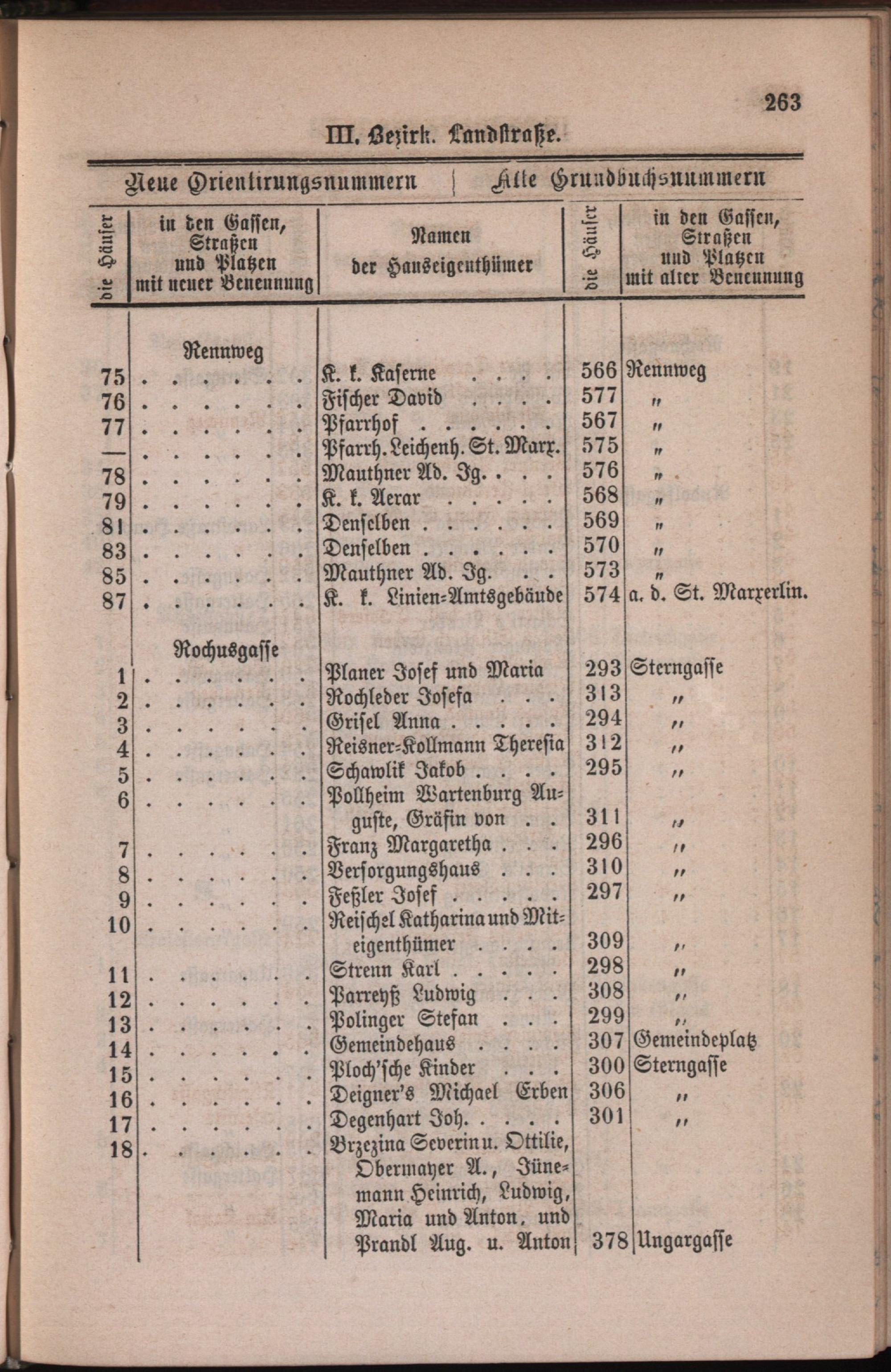 3: Landstraße : Nachweis der alten und neuen Benennungen der Gassen, Straßen und Plätze in alphabetischer Ordnung