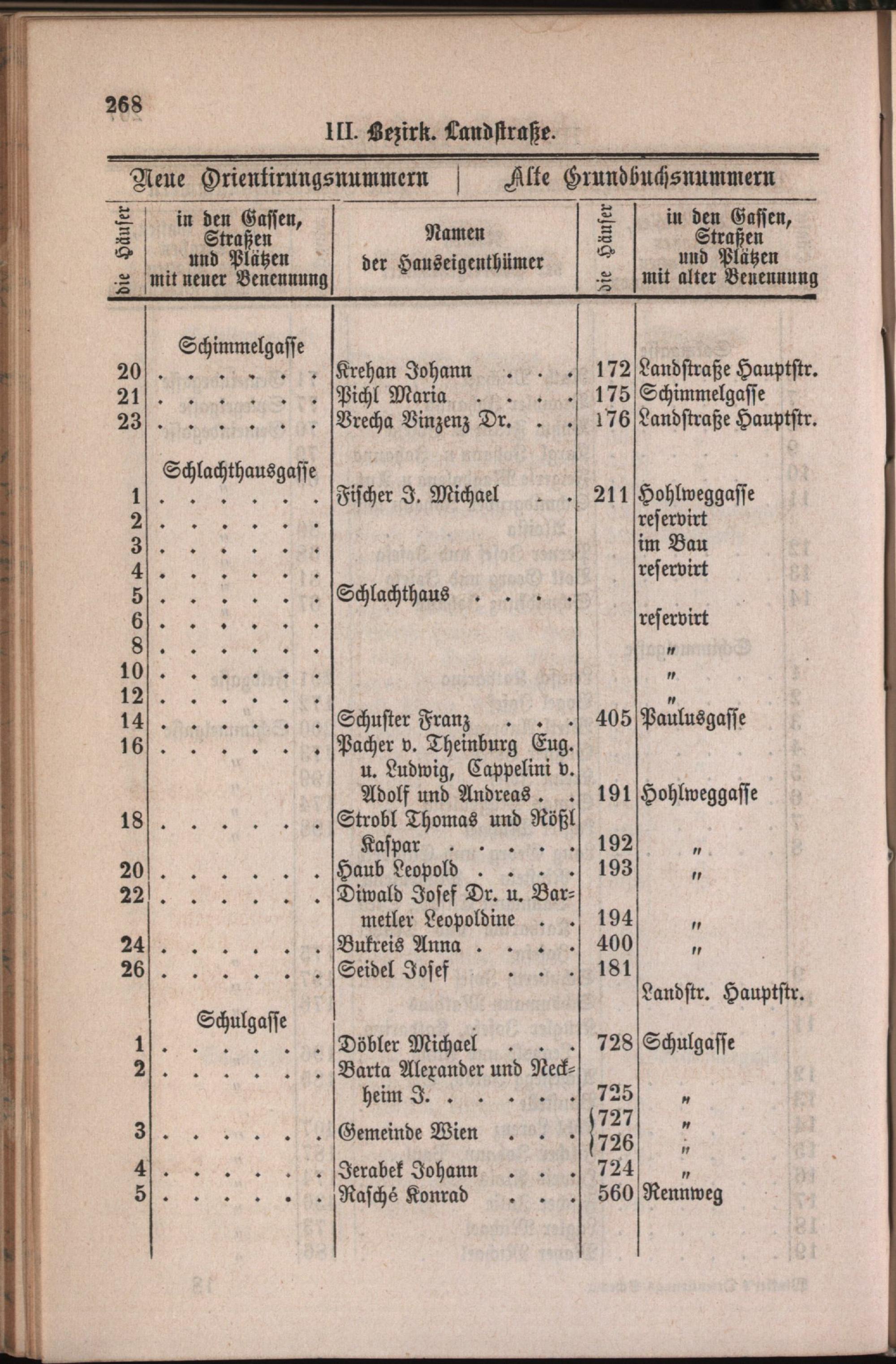 3: Landstraße : Nachweis der alten und neuen Benennungen der Gassen, Straßen und Plätze in alphabetischer Ordnung