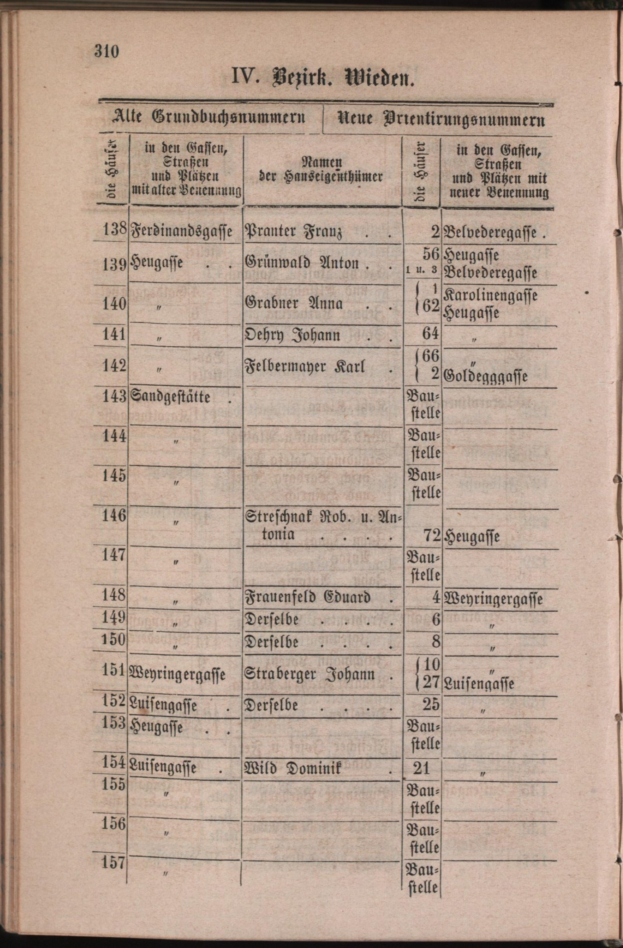 4: Wieden : Nachweis der alten und neuen Benennungen der Gassen, Straßen und Plätze in alphabetischer Ordnung