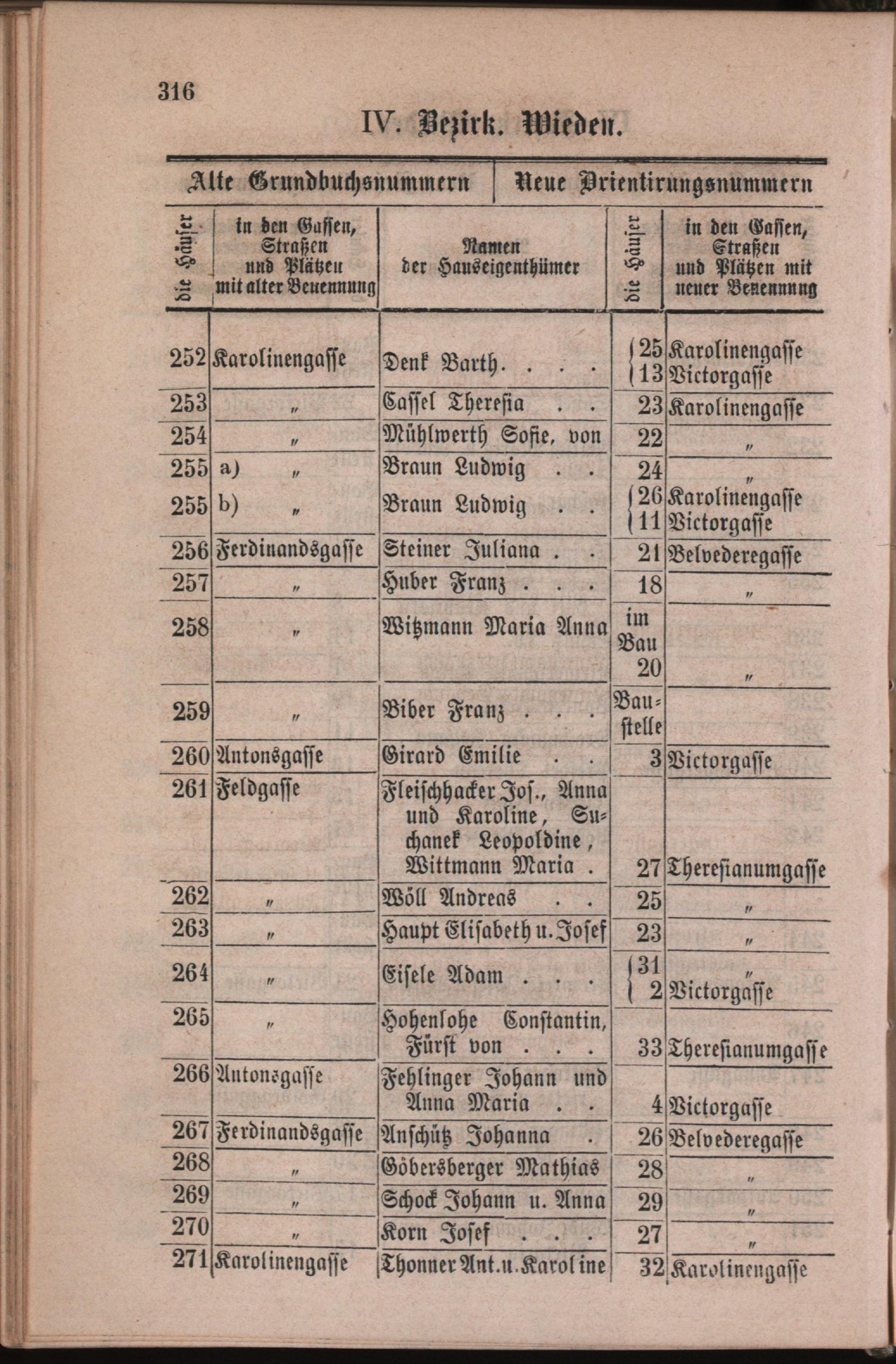 4: Wieden : Nachweis der alten und neuen Benennungen der Gassen, Straßen und Plätze in alphabetischer Ordnung