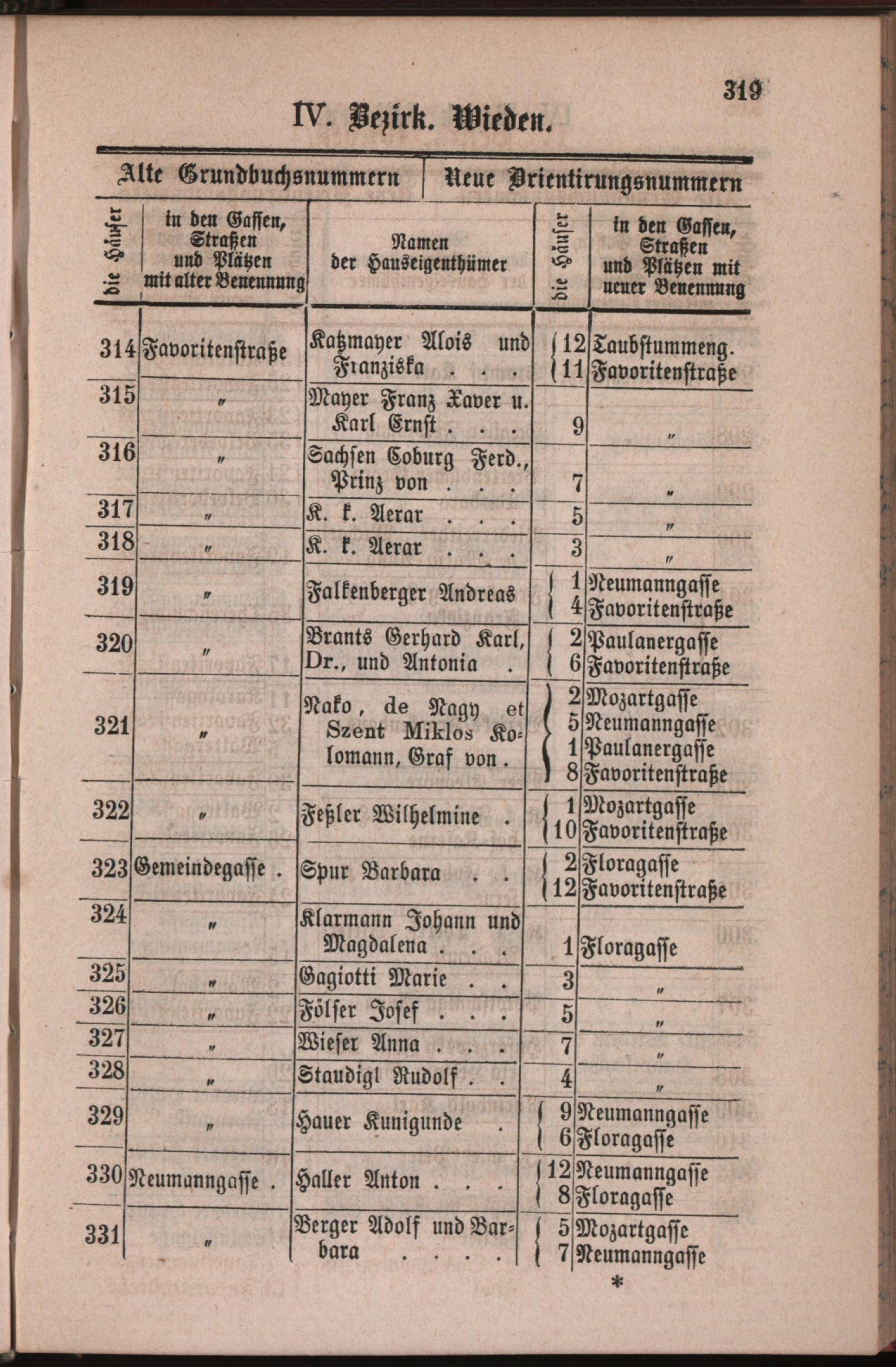 4: Wieden : Nachweis der alten und neuen Benennungen der Gassen, Straßen und Plätze in alphabetischer Ordnung