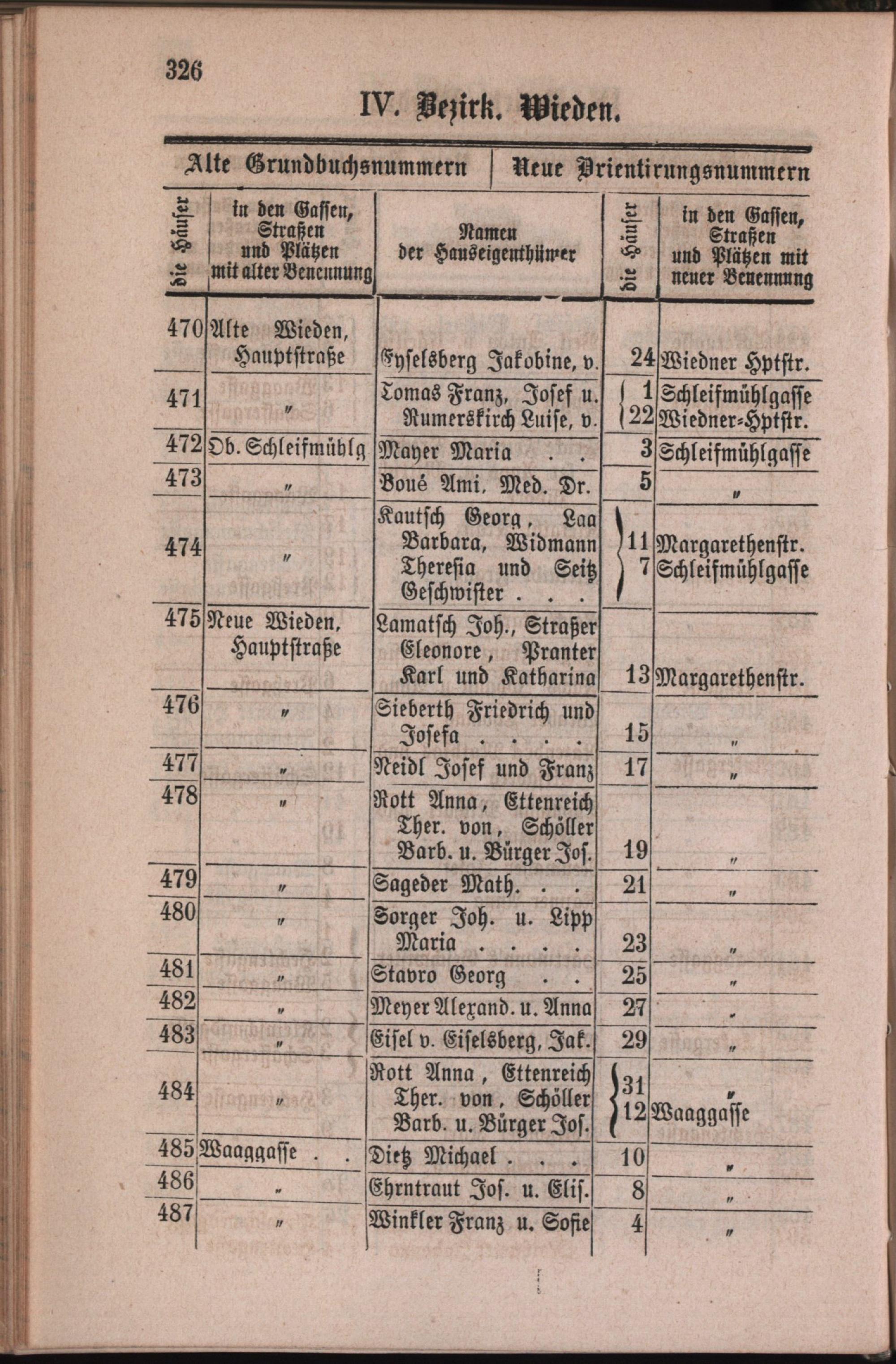 4: Wieden : Nachweis der alten und neuen Benennungen der Gassen, Straßen und Plätze in alphabetischer Ordnung