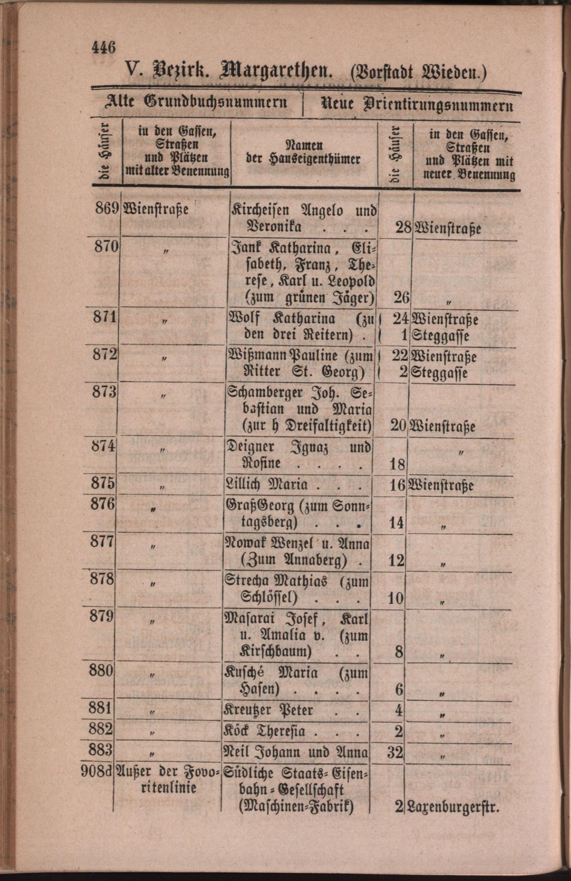 5: Margarethen : Nachweis der alten und neuen Benennungen der Gassen, Straßen und Plätze in alphabetischer Ordnung