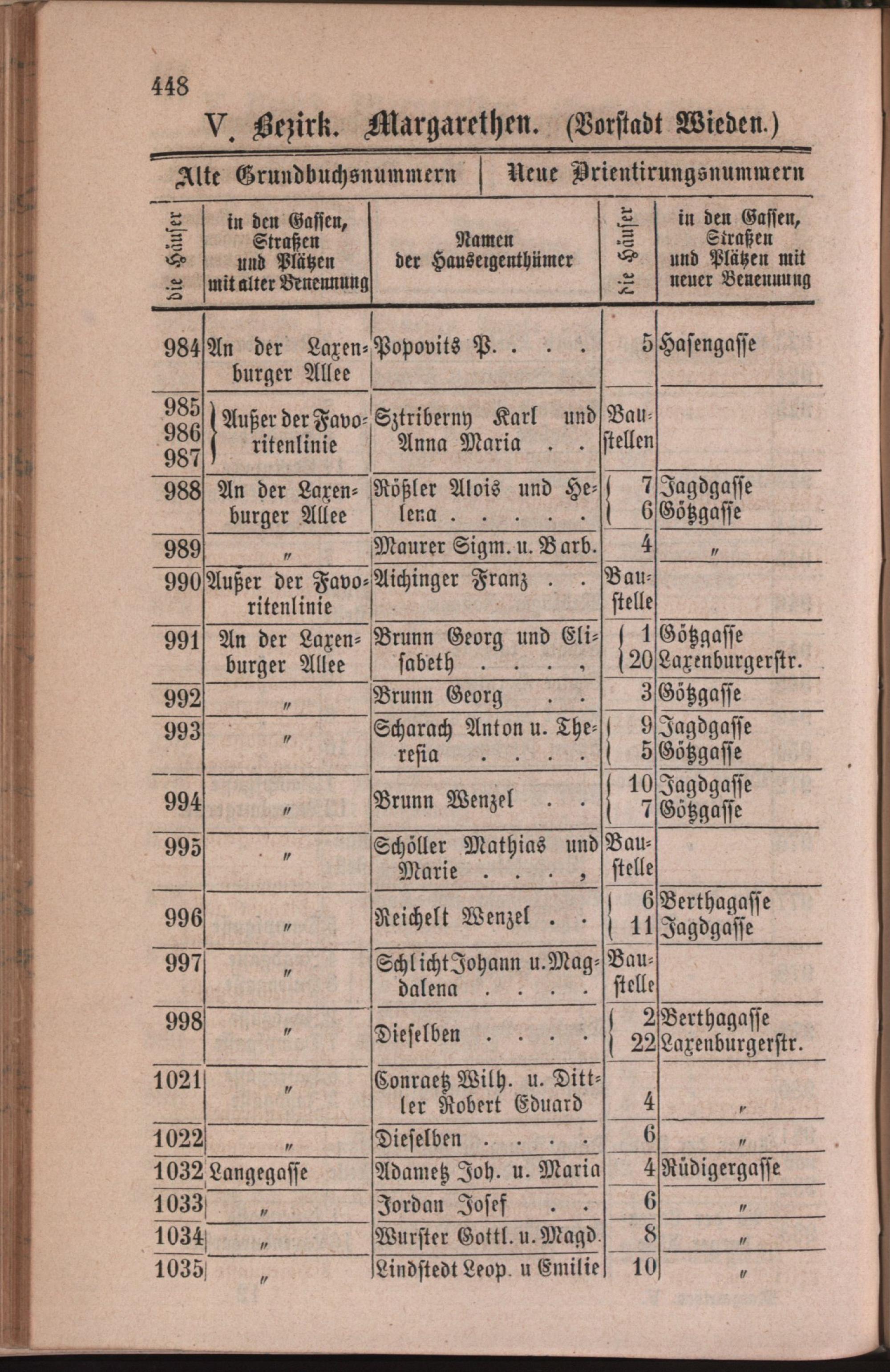 5: Margarethen : Nachweis der alten und neuen Benennungen der Gassen, Straßen und Plätze in alphabetischer Ordnung