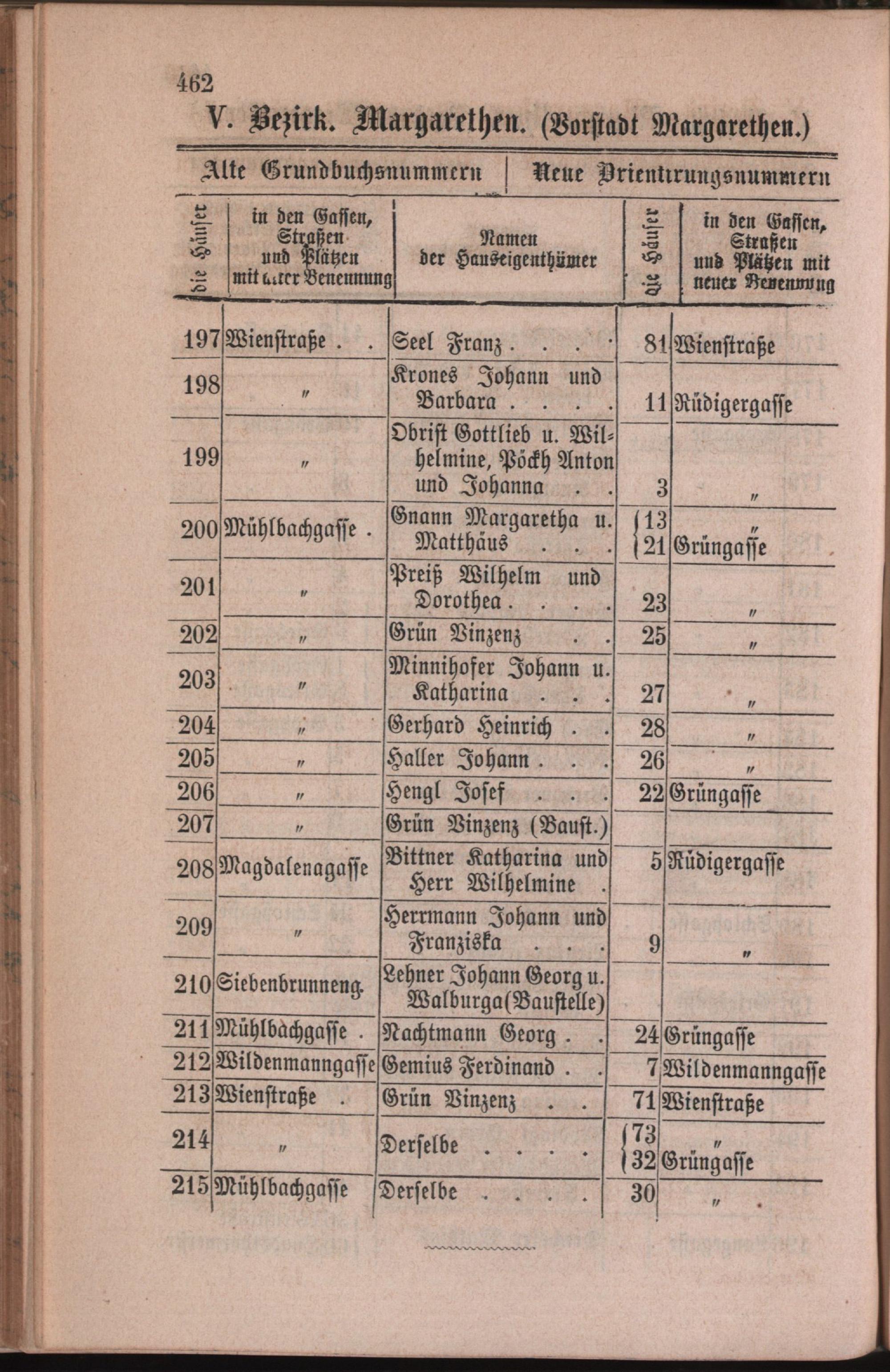 5: Margarethen : Nachweis der alten und neuen Benennungen der Gassen, Straßen und Plätze in alphabetischer Ordnung