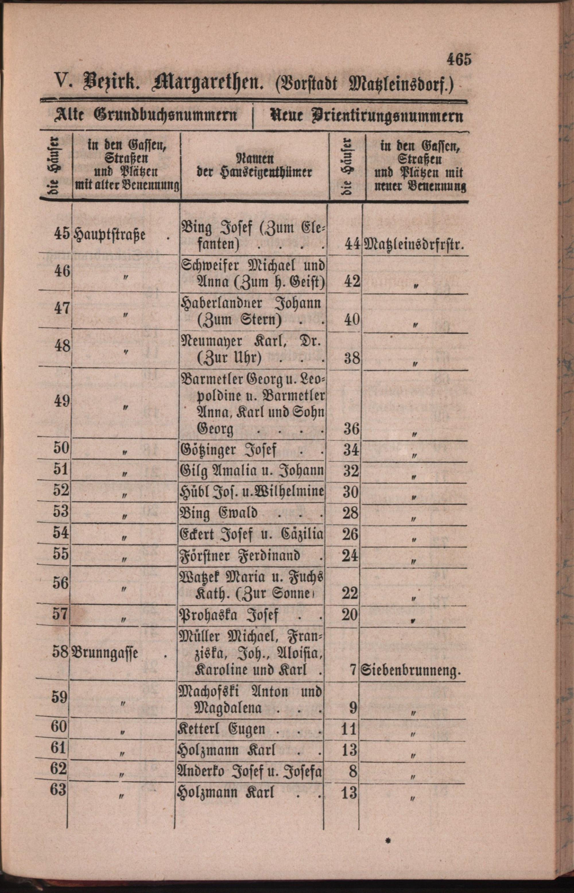 5: Margarethen : Nachweis der alten und neuen Benennungen der Gassen, Straßen und Plätze in alphabetischer Ordnung