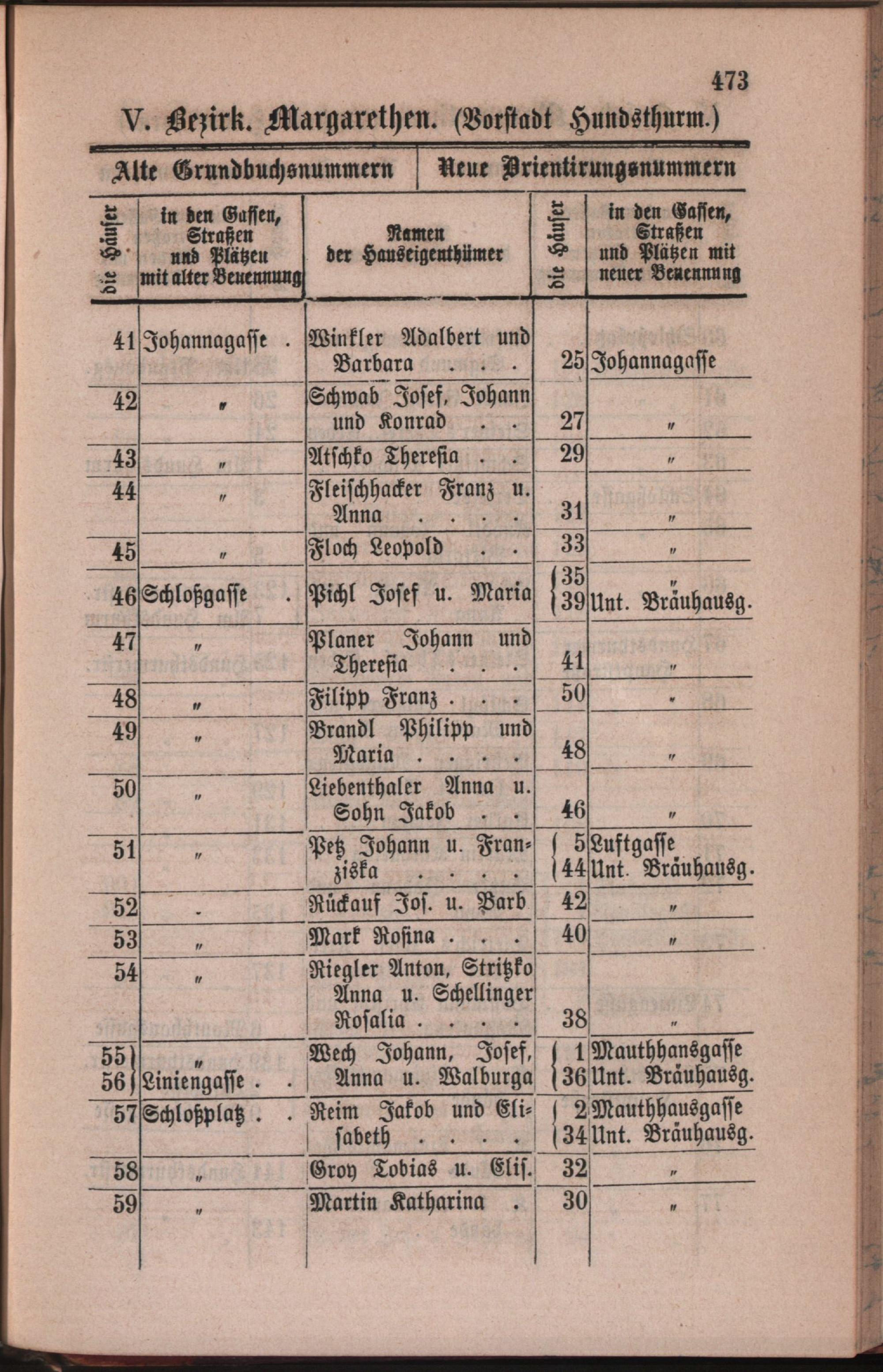5: Margarethen : Nachweis der alten und neuen Benennungen der Gassen, Straßen und Plätze in alphabetischer Ordnung