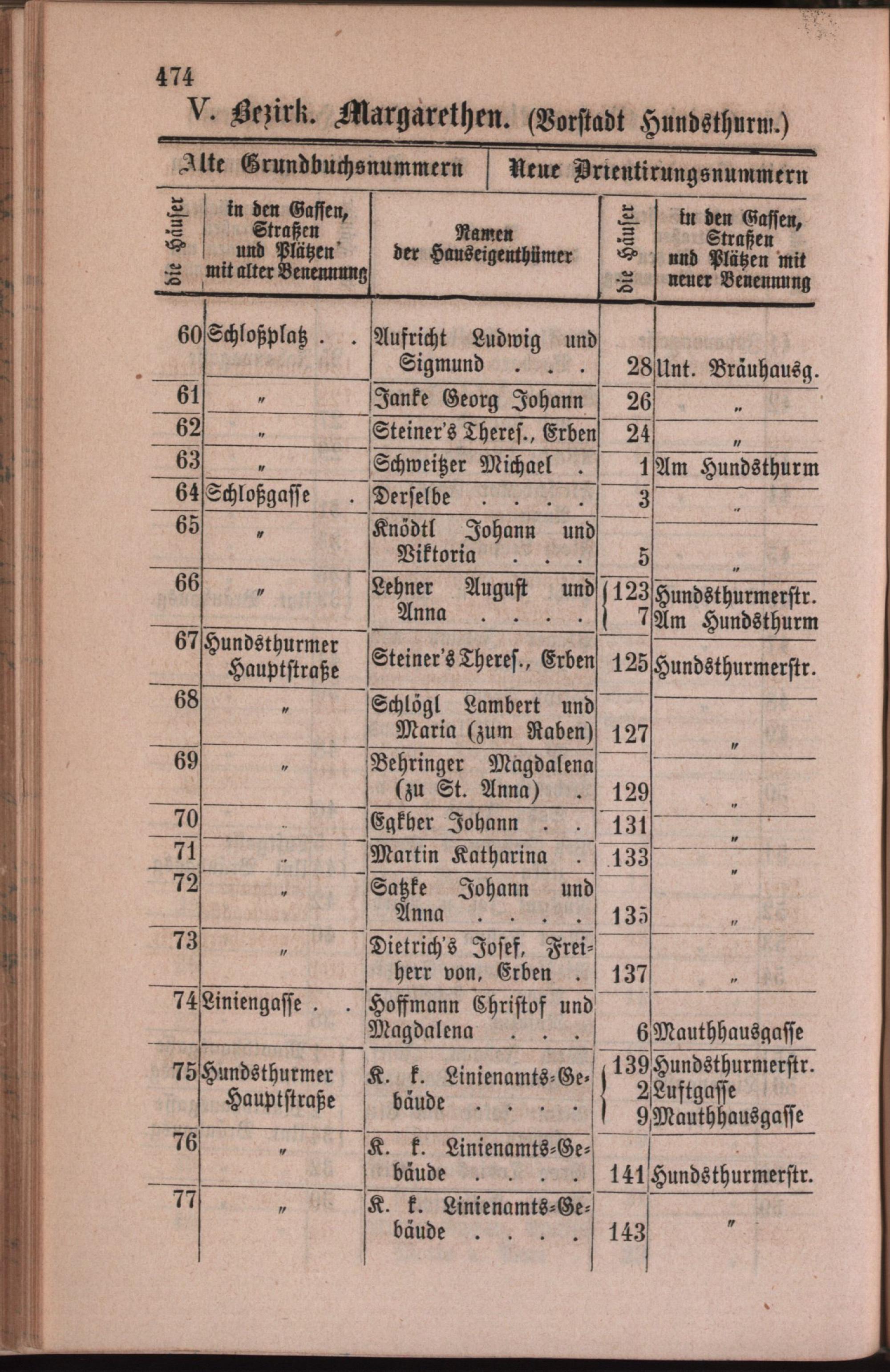 5: Margarethen : Nachweis der alten und neuen Benennungen der Gassen, Straßen und Plätze in alphabetischer Ordnung