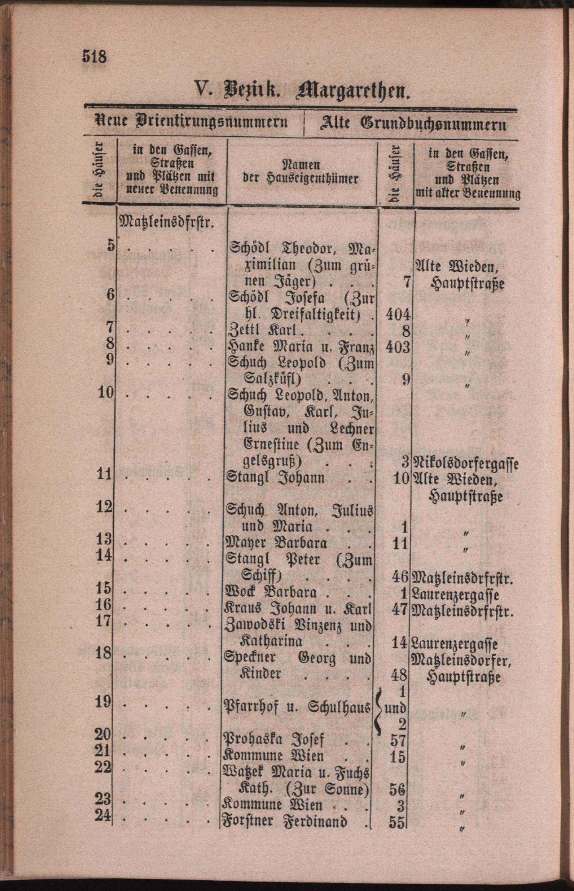 5: Margarethen : Nachweis der alten und neuen Benennungen der Gassen, Straßen und Plätze in alphabetischer Ordnung
