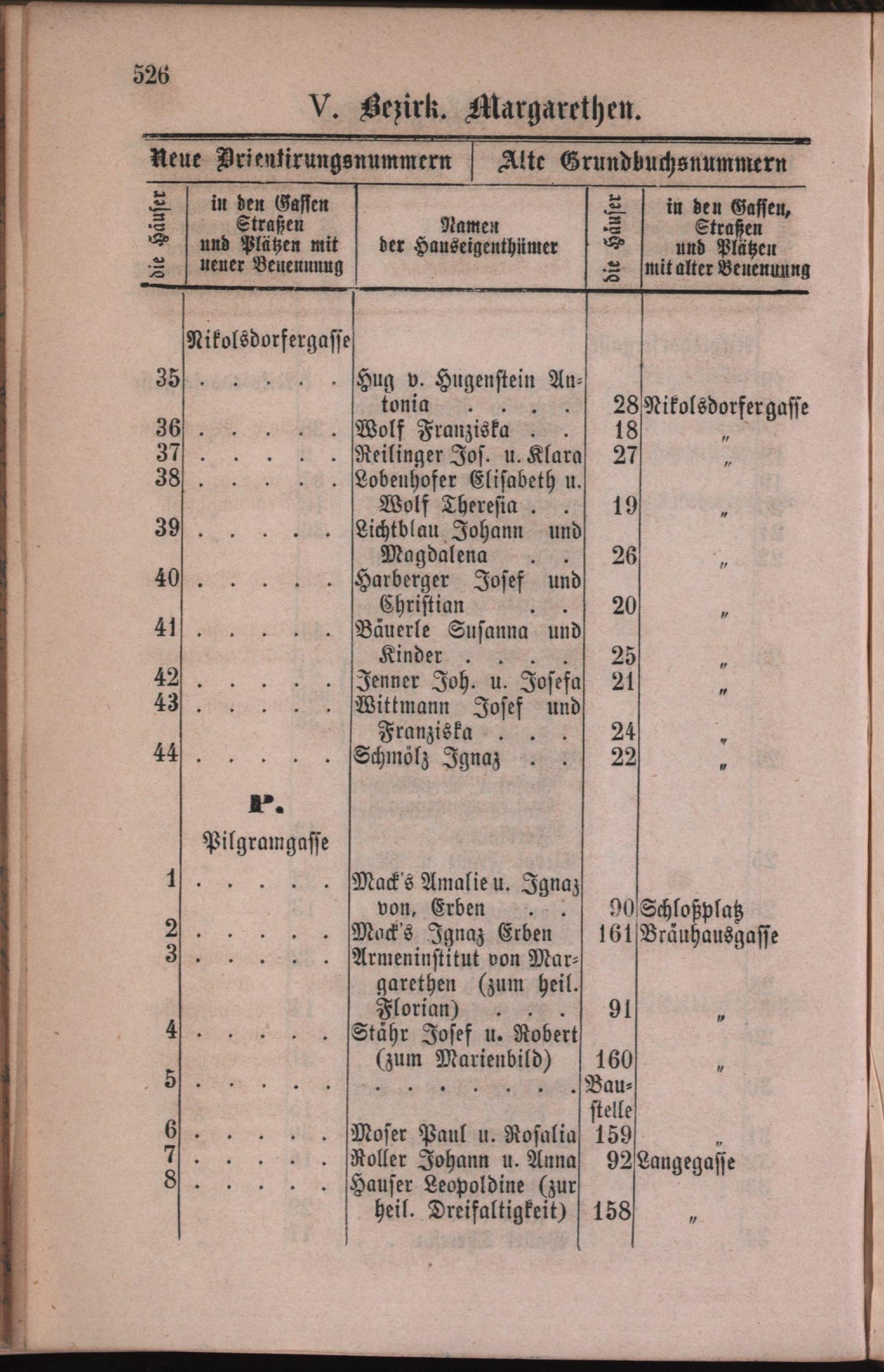 5: Margarethen : Nachweis der alten und neuen Benennungen der Gassen, Straßen und Plätze in alphabetischer Ordnung