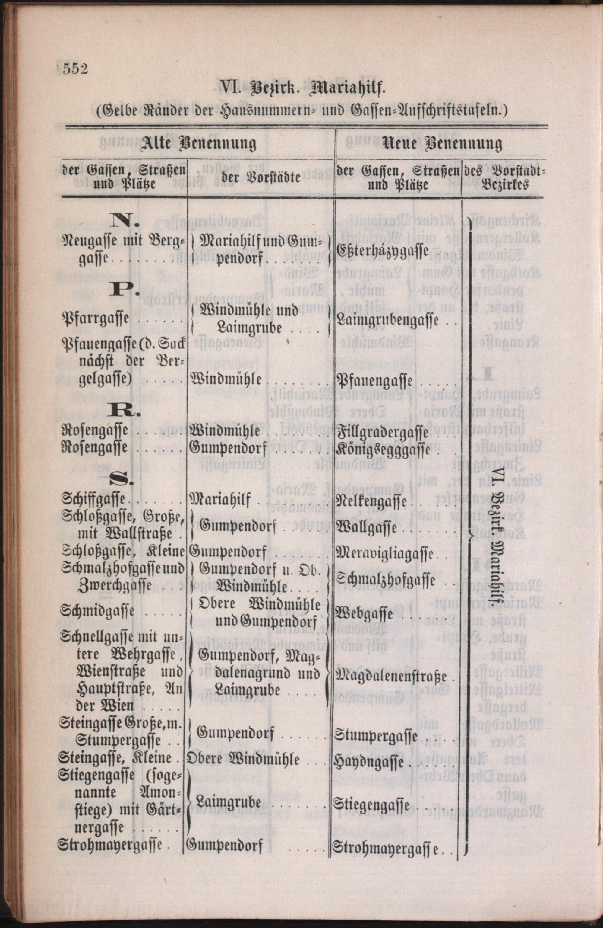 6: Mariahilf : Nachweis der alten und neuen Benennungen der Gassen, Straßen und Plätze in alphabetischer Ordnung