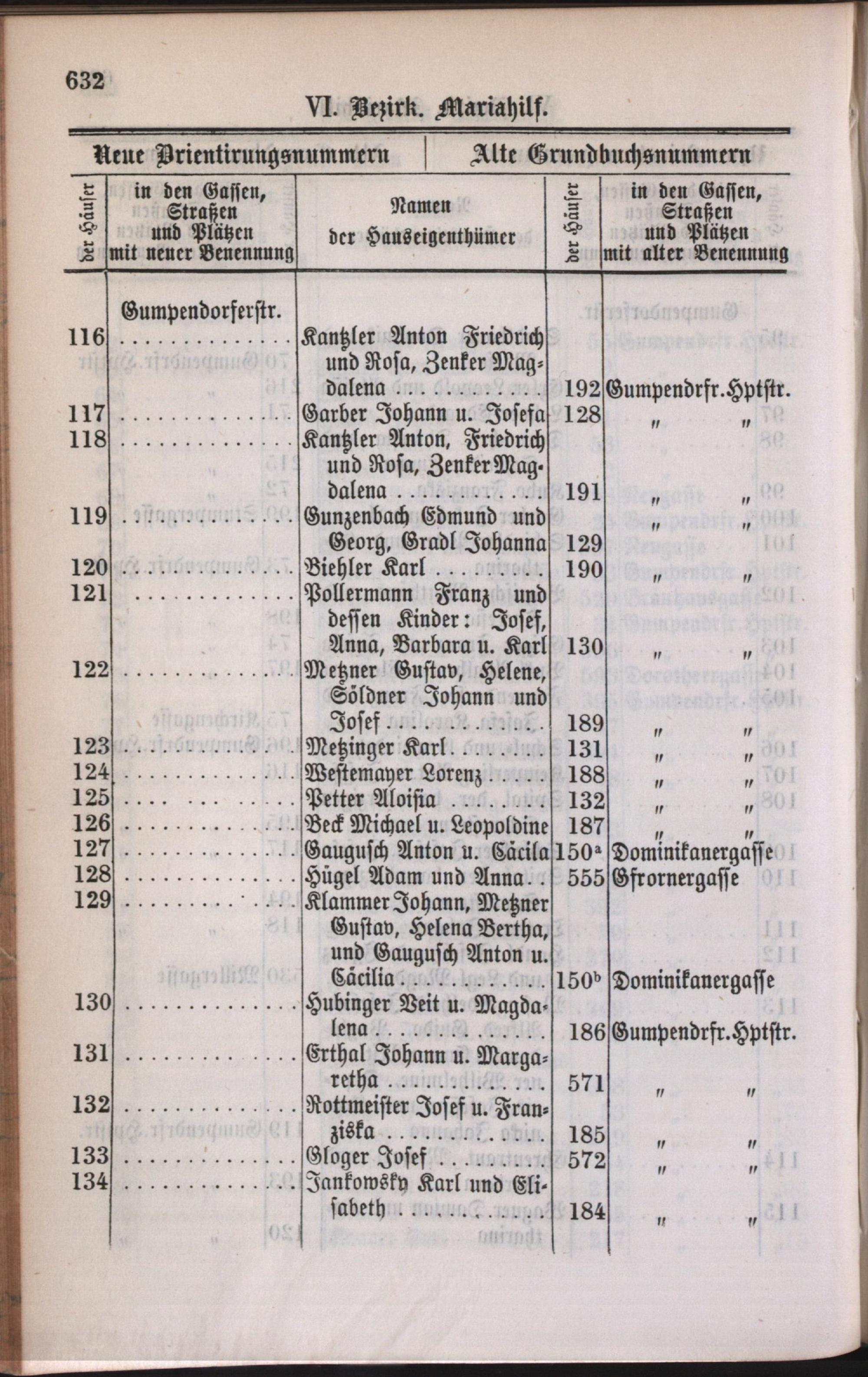 6: Mariahilf : Nachweis der alten und neuen Benennungen der Gassen, Straßen und Plätze in alphabetischer Ordnung