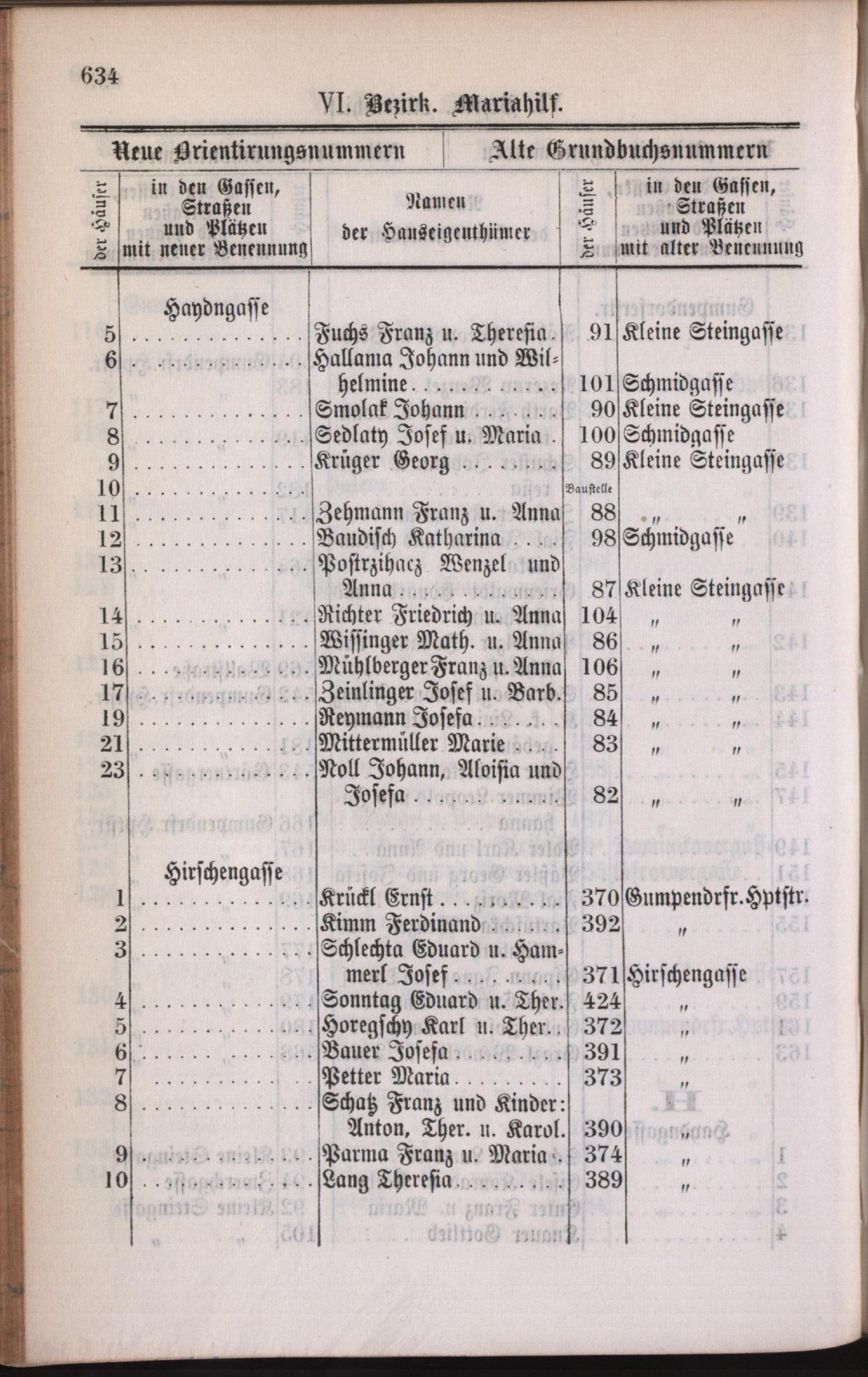 6: Mariahilf : Nachweis der alten und neuen Benennungen der Gassen, Straßen und Plätze in alphabetischer Ordnung