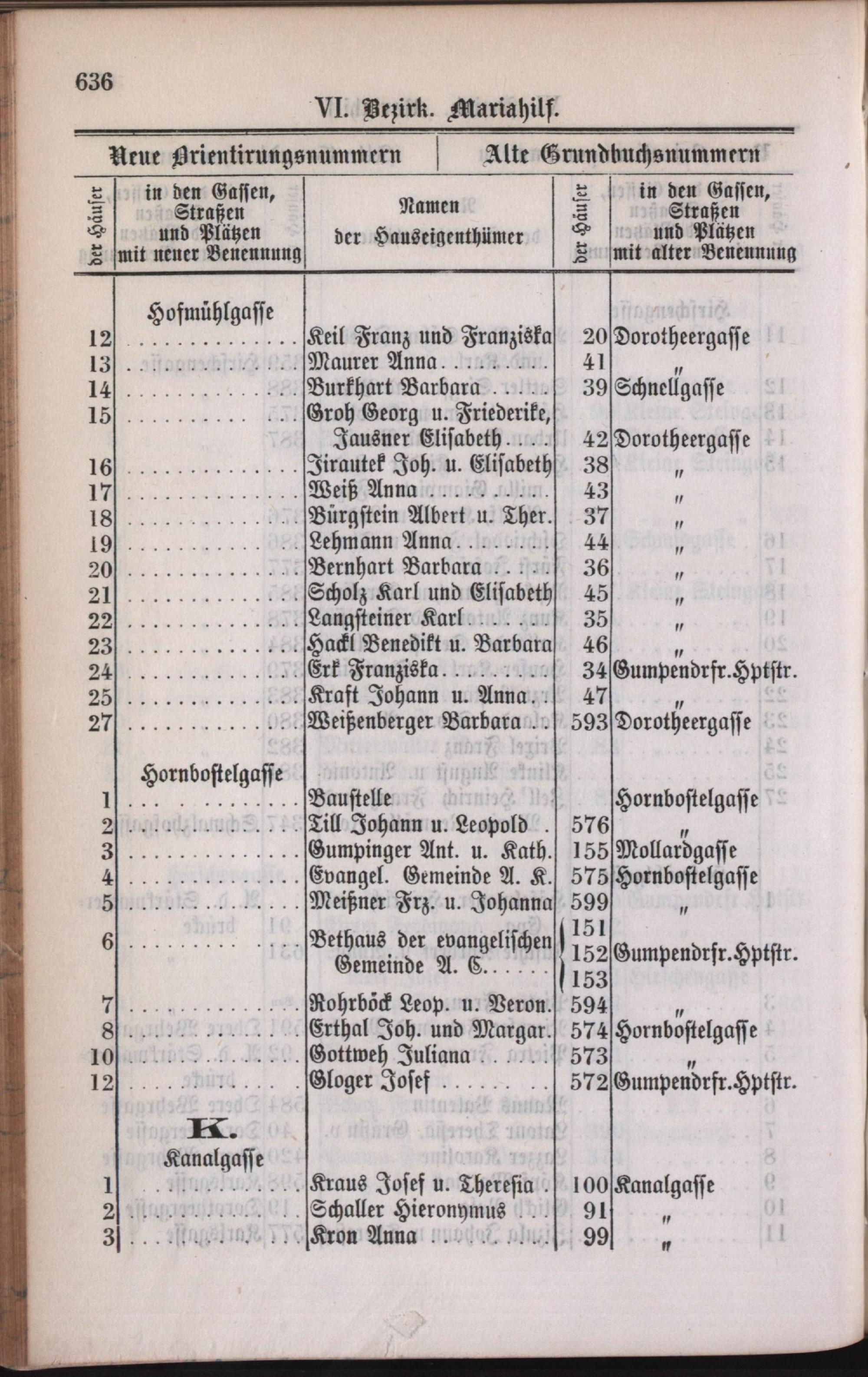 6: Mariahilf : Nachweis der alten und neuen Benennungen der Gassen, Straßen und Plätze in alphabetischer Ordnung