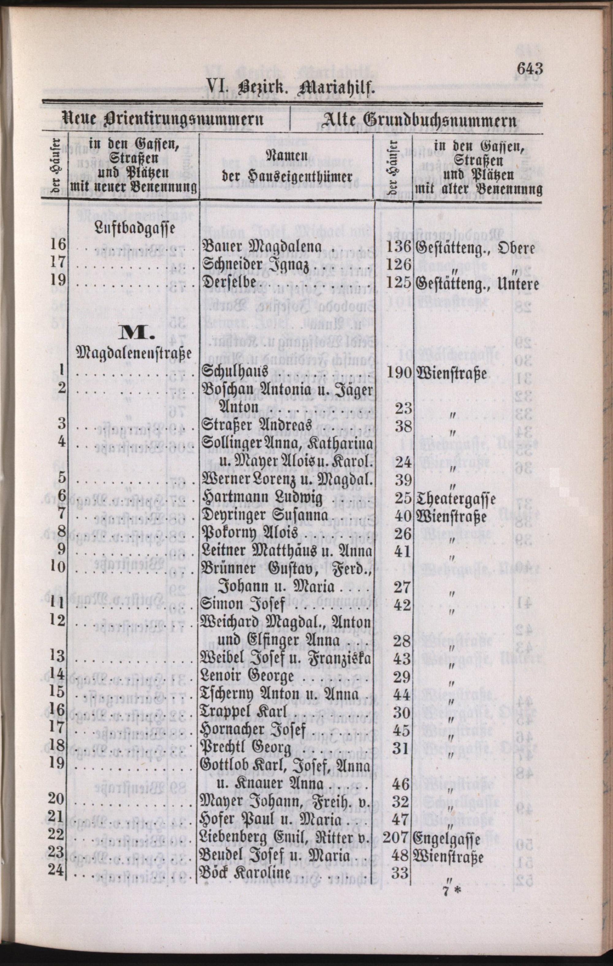 6: Mariahilf : Nachweis der alten und neuen Benennungen der Gassen, Straßen und Plätze in alphabetischer Ordnung